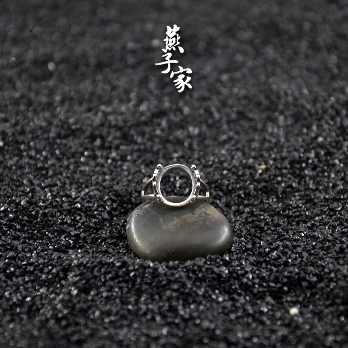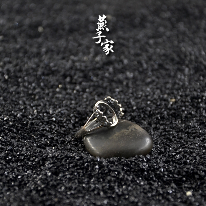 燕子家925银女戒指空托镶嵌琥珀蜜蜡戒面复古纯银做旧开口戒托