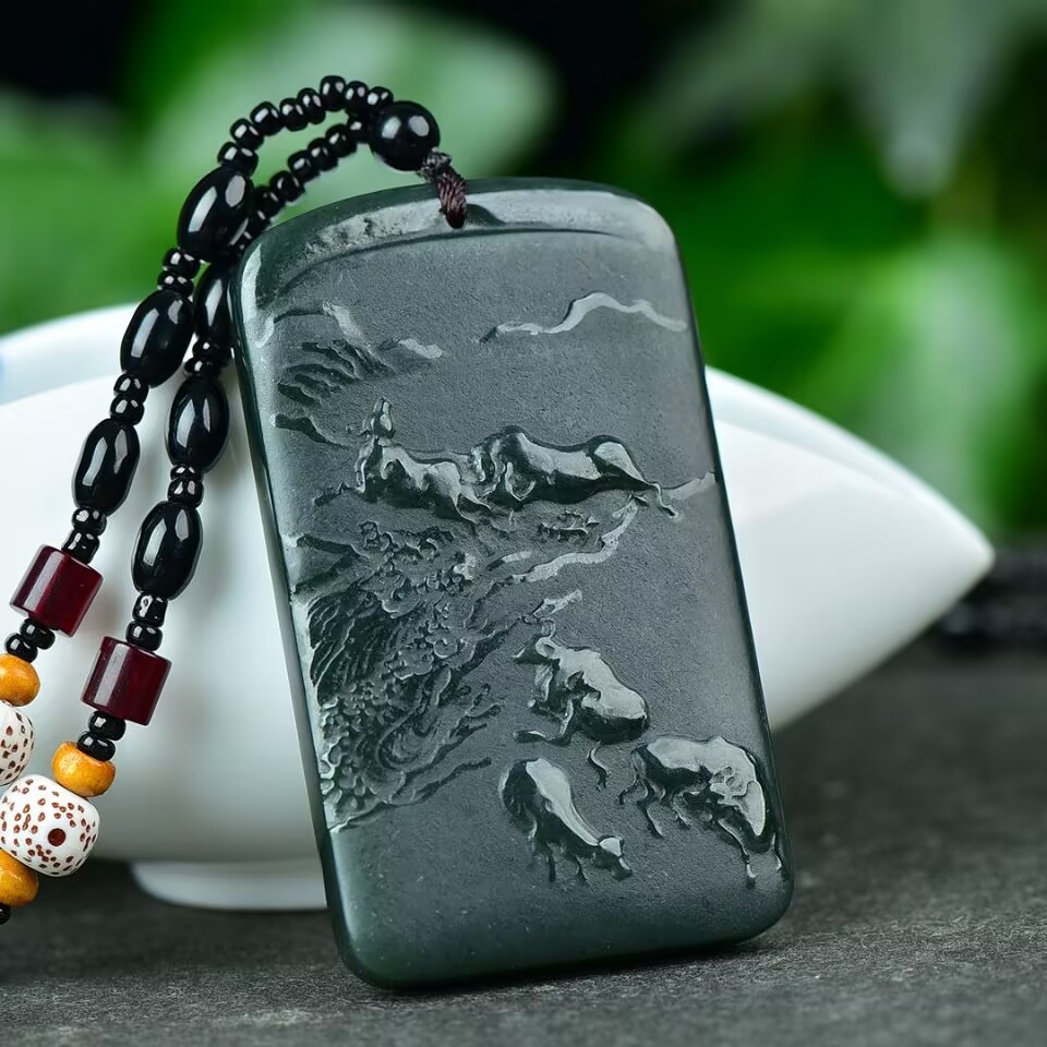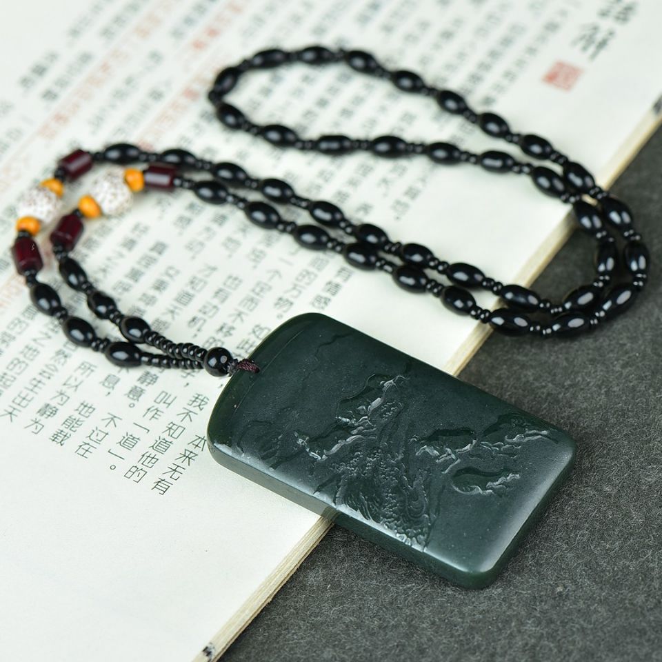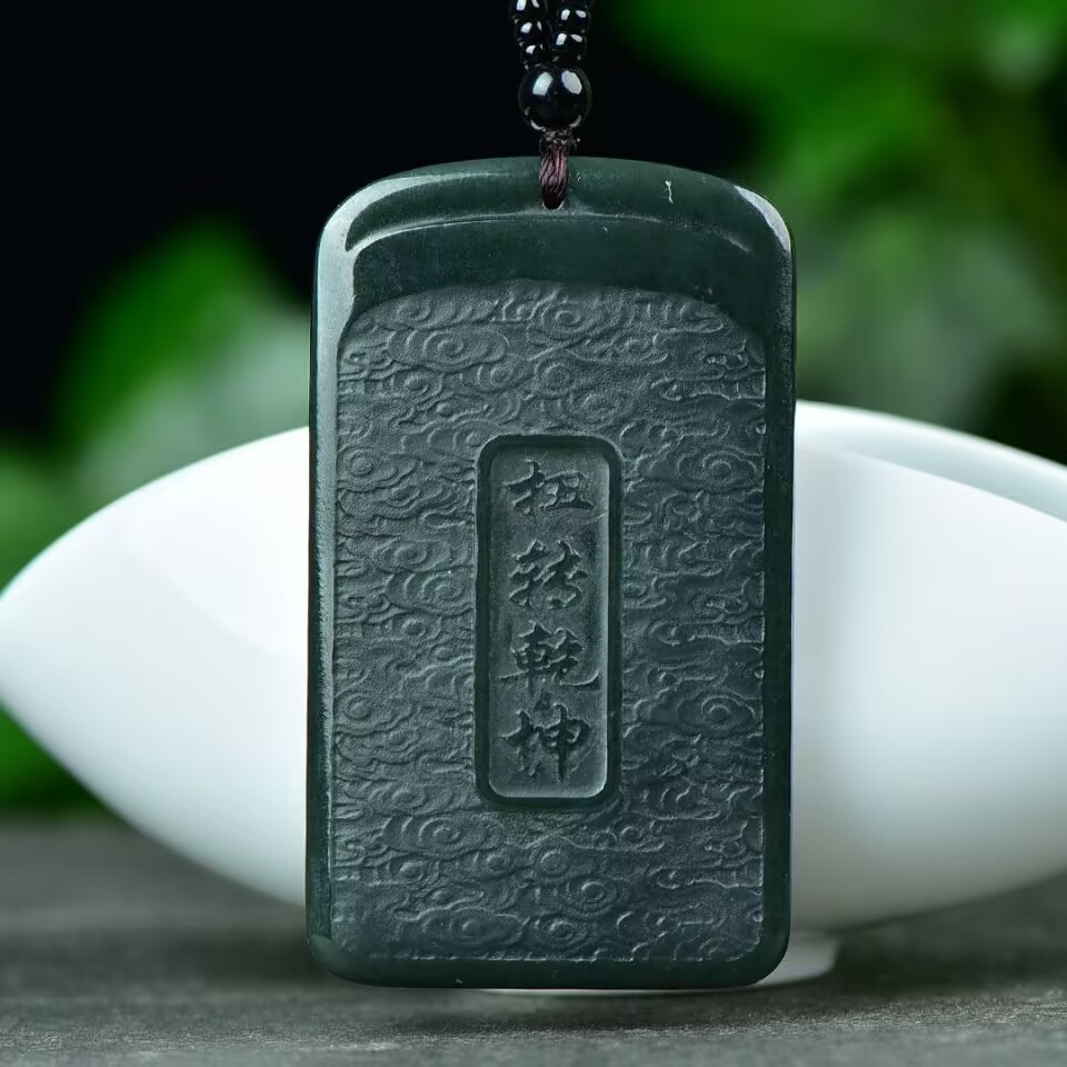 精致和田青玉牛转乾坤牌子吊坠男女款小众设计简约玉石项链玉坠