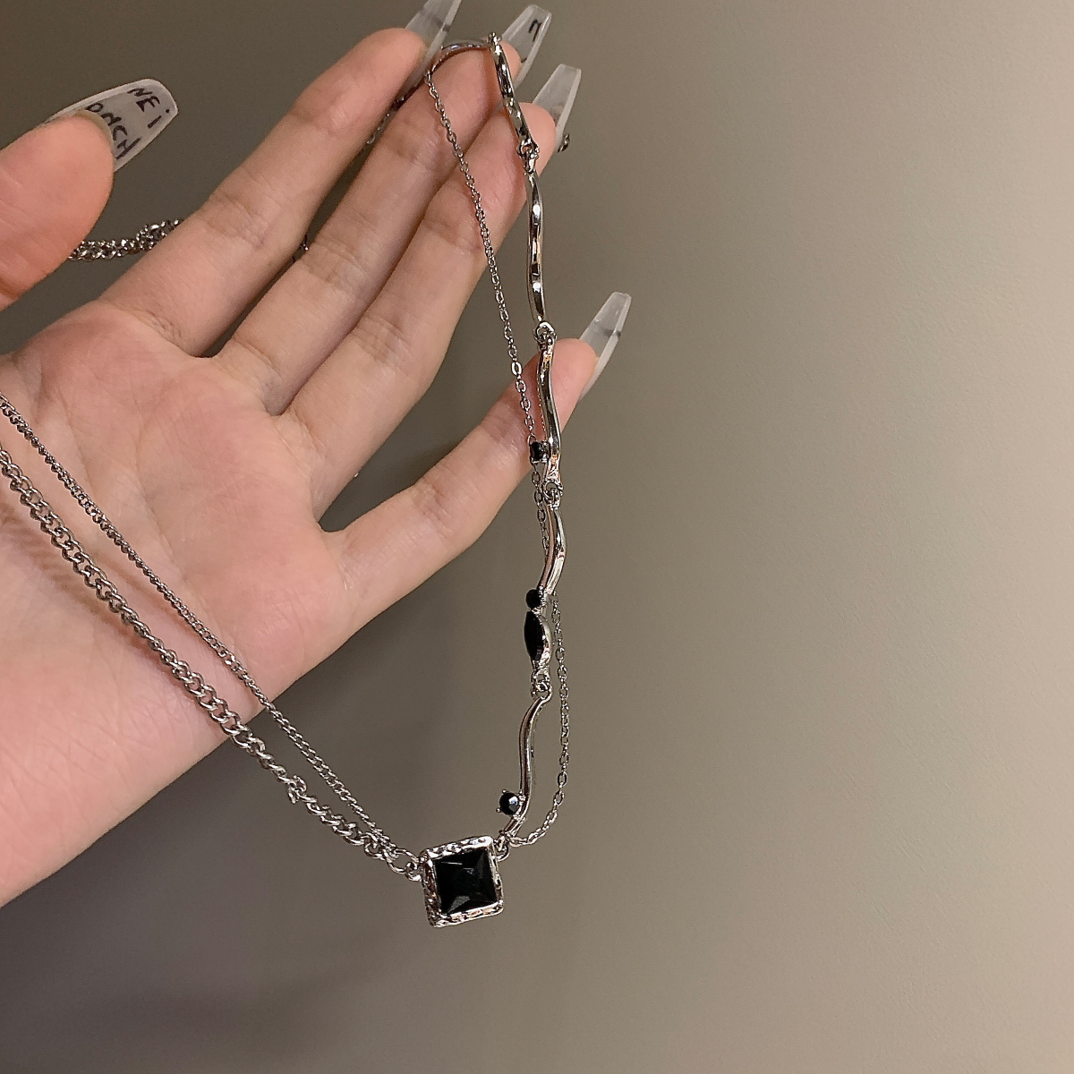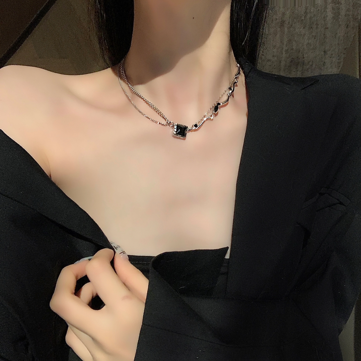 黑色锆石方钻项链女甜酷锁骨链配饰轻奢小众高级感网红冷淡风颈链