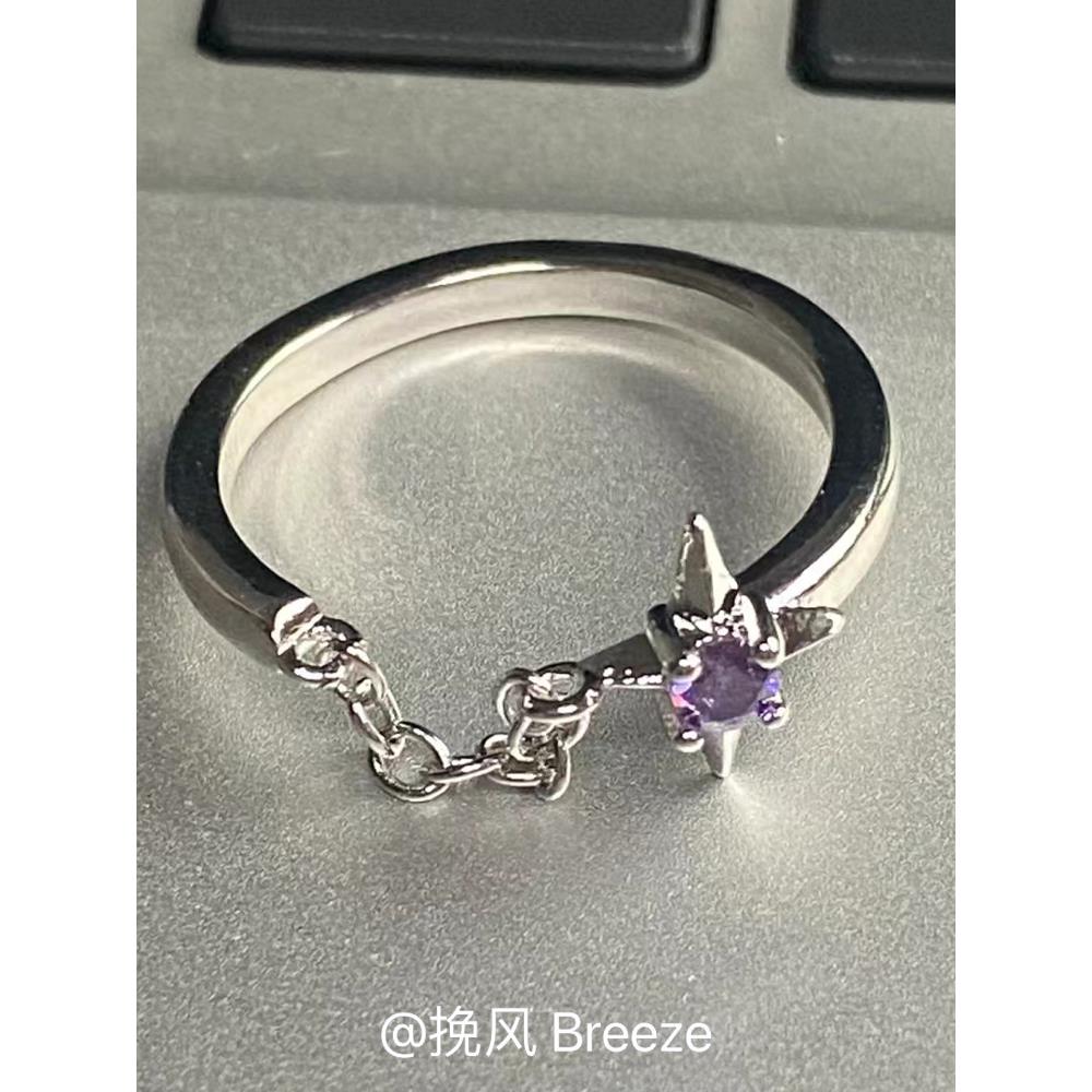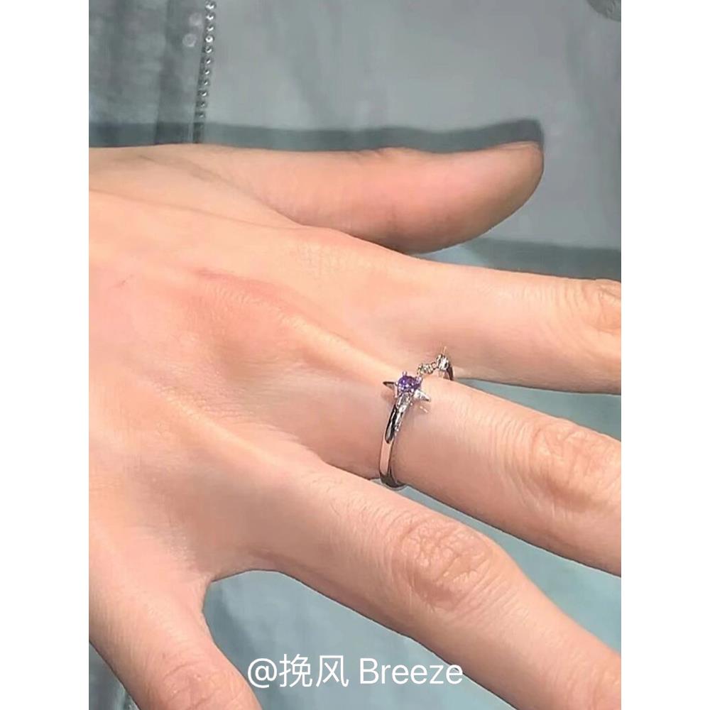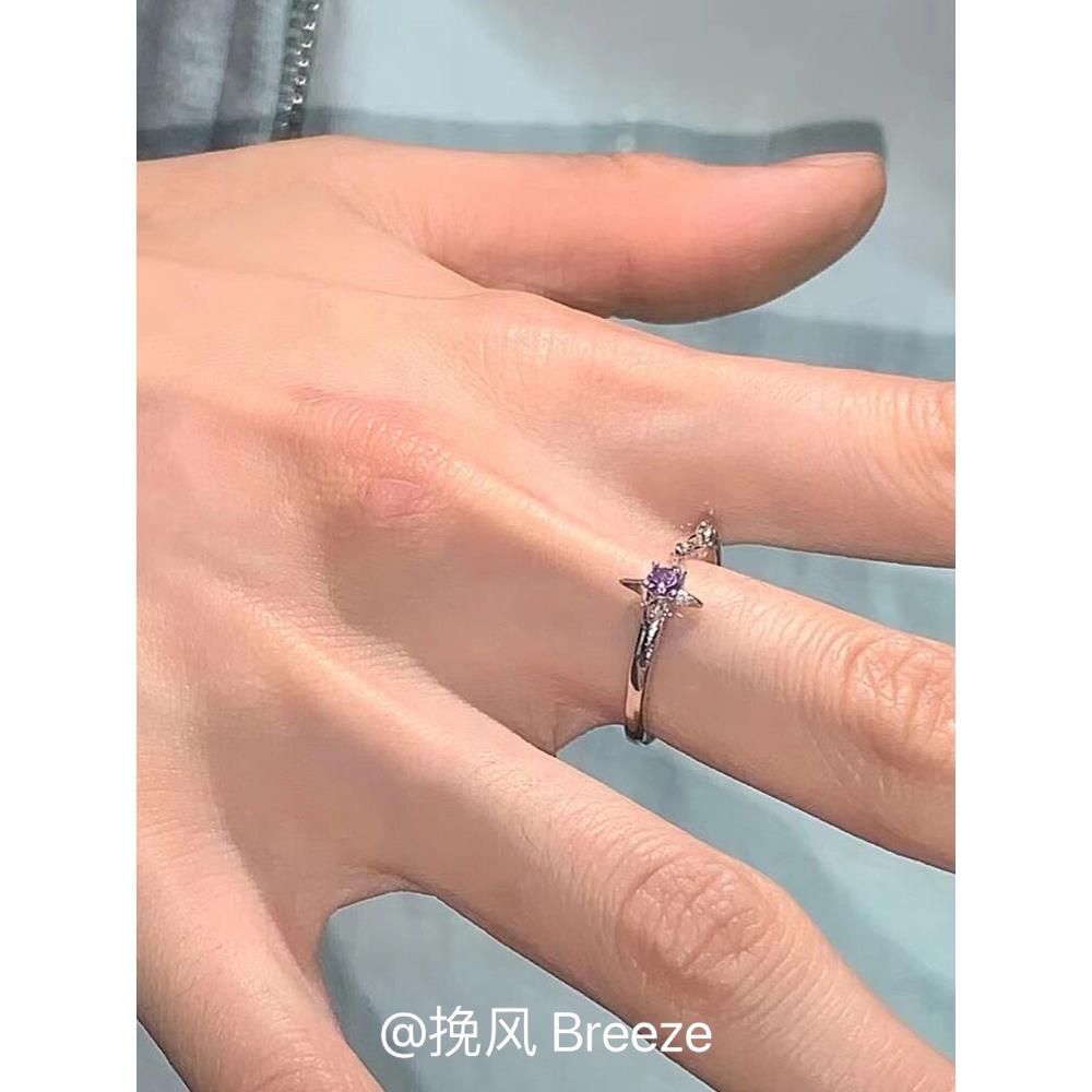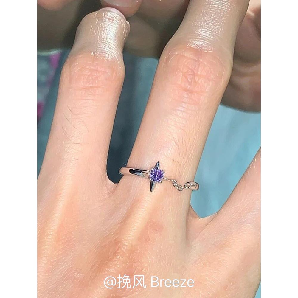 紫色仿钻四芒星链条戒指女小众设计轻奢高级感指环2025新爆款食指
