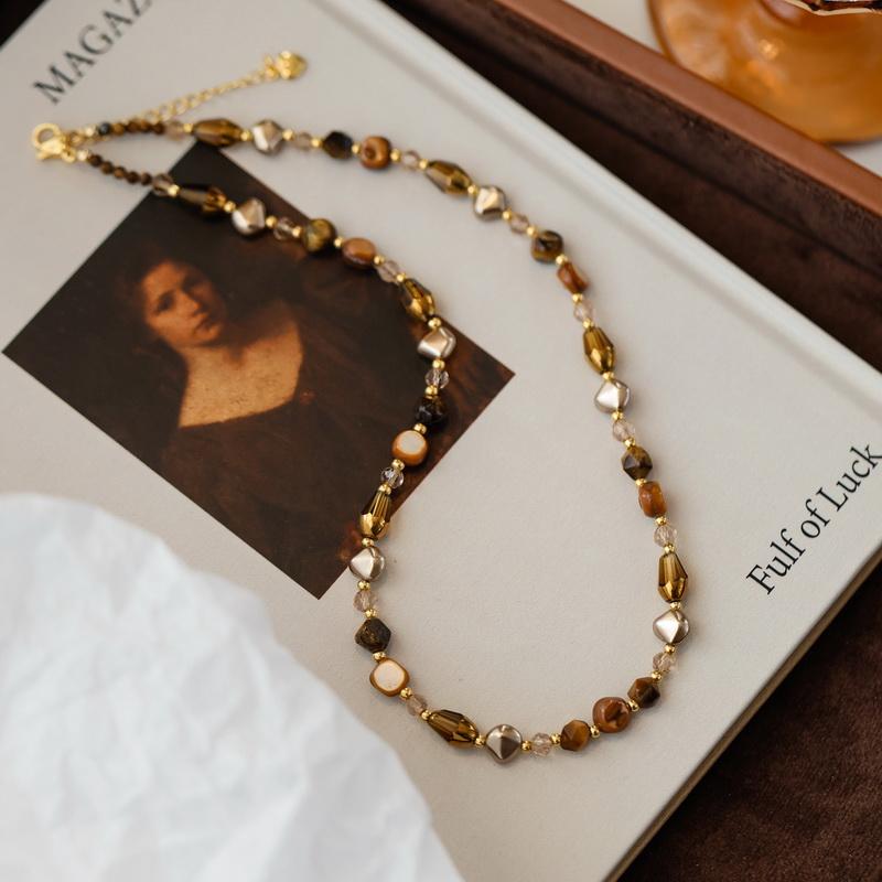 高品质~美拉德虎眼石串珠项链女锁骨链高级感小众轻奢礼物