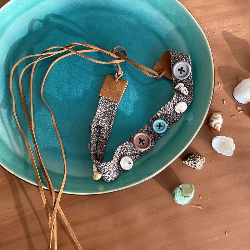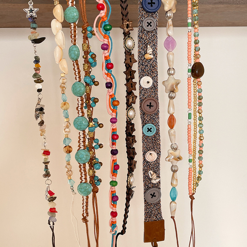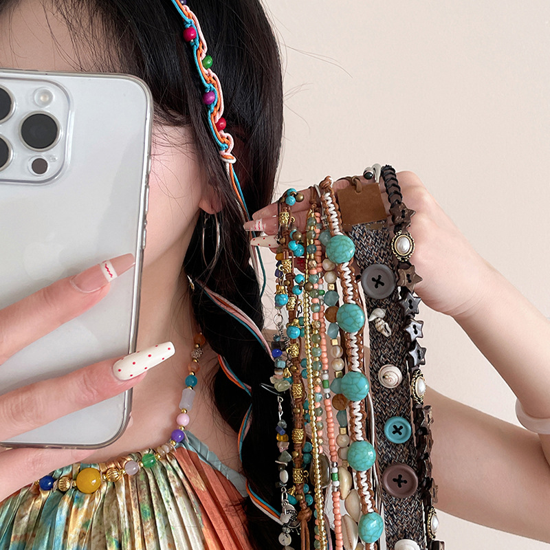 复古民族风天然石编织绳腰链女款波西米亚编发头饰配裙子腰带项链