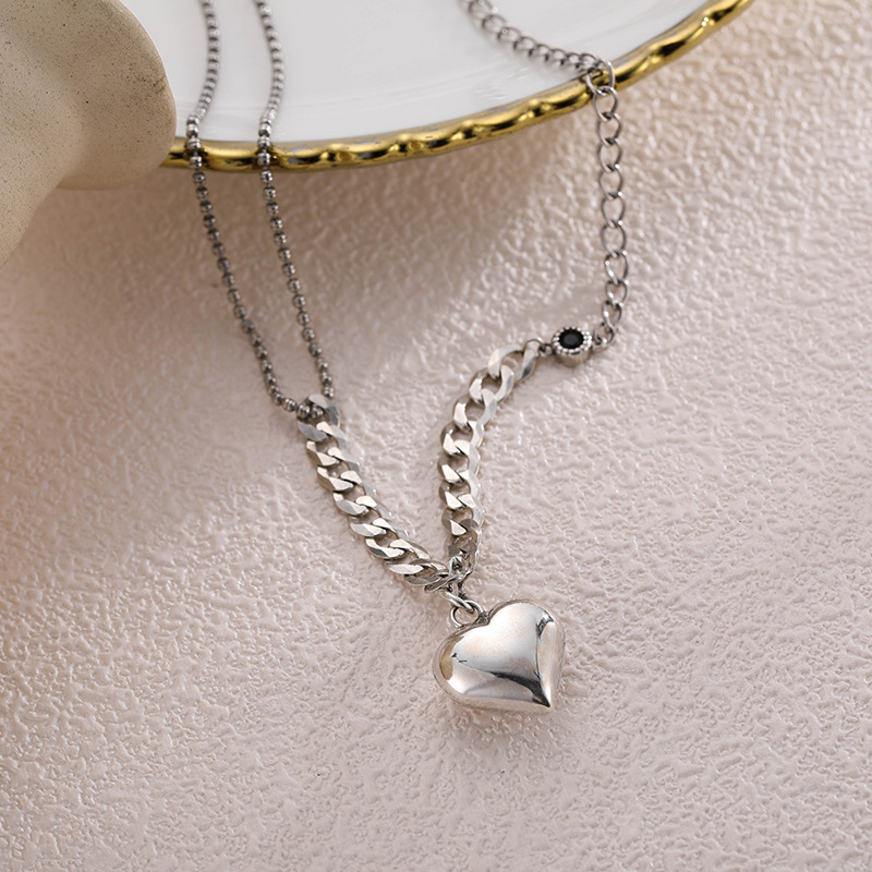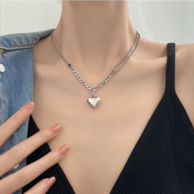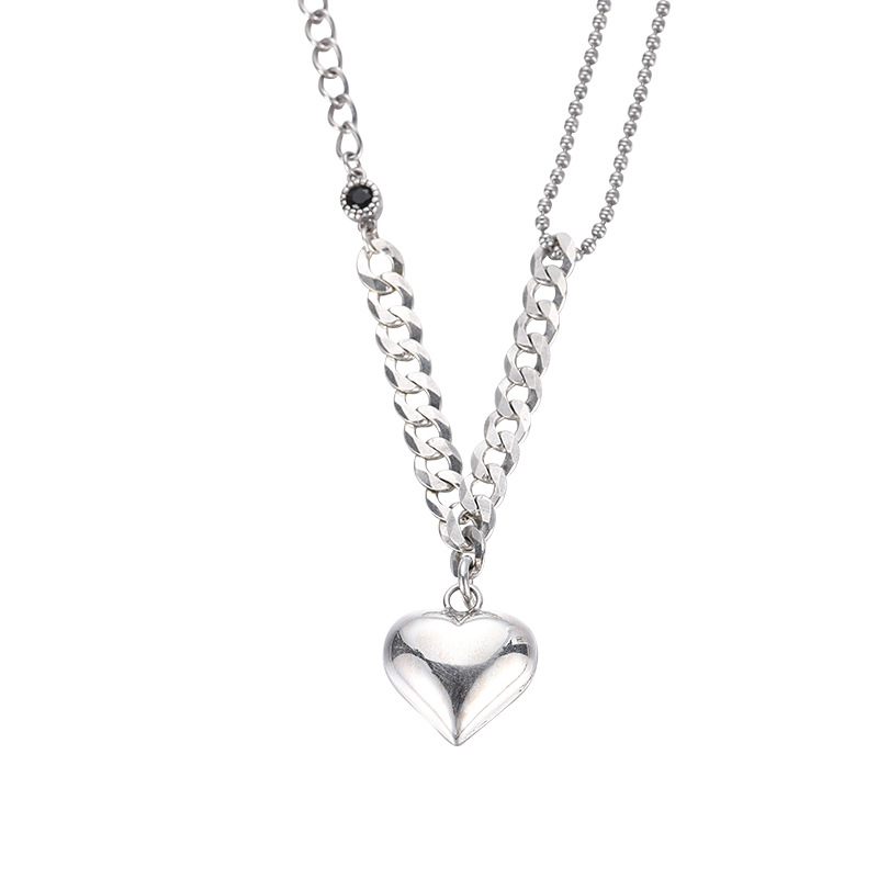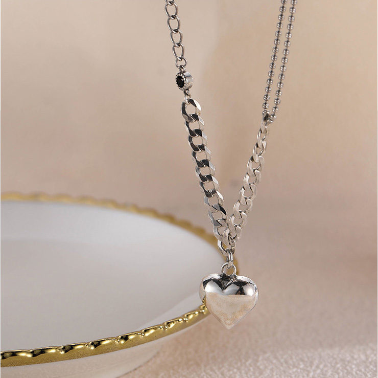 925纯银复古爱心不对称项链女高级感轻奢小众桃心配饰锁骨链45cm