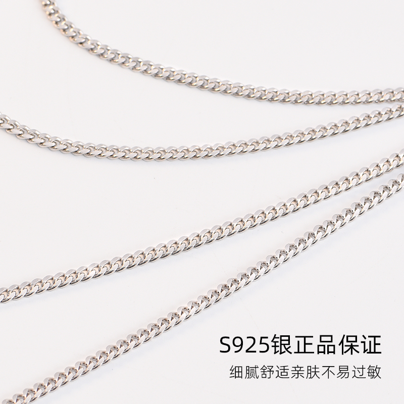 侧身链925纯银项链女锁骨链新款长款毛衣链纯银链子平板链不掉色