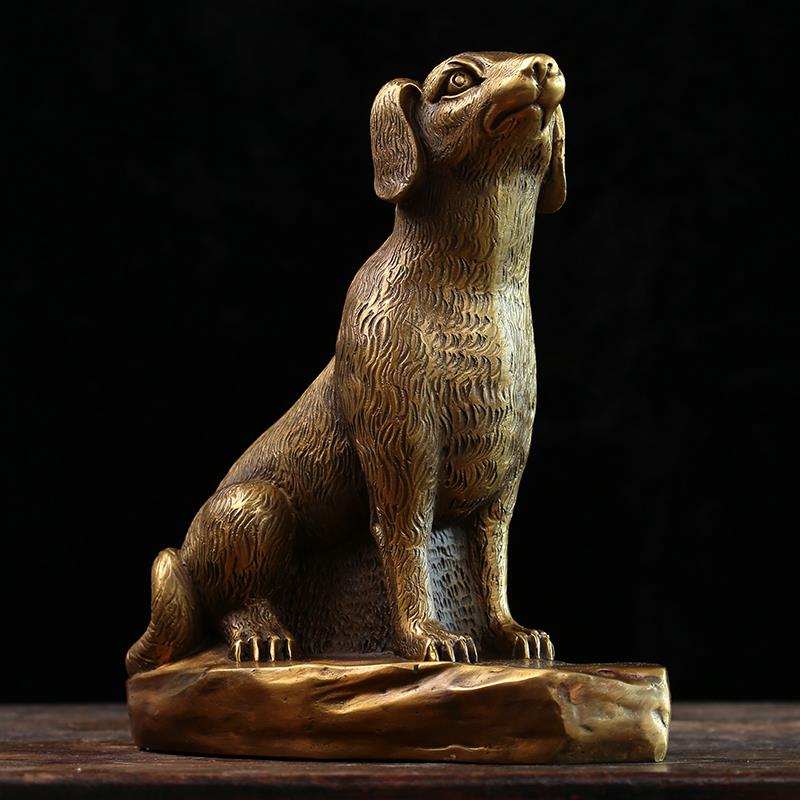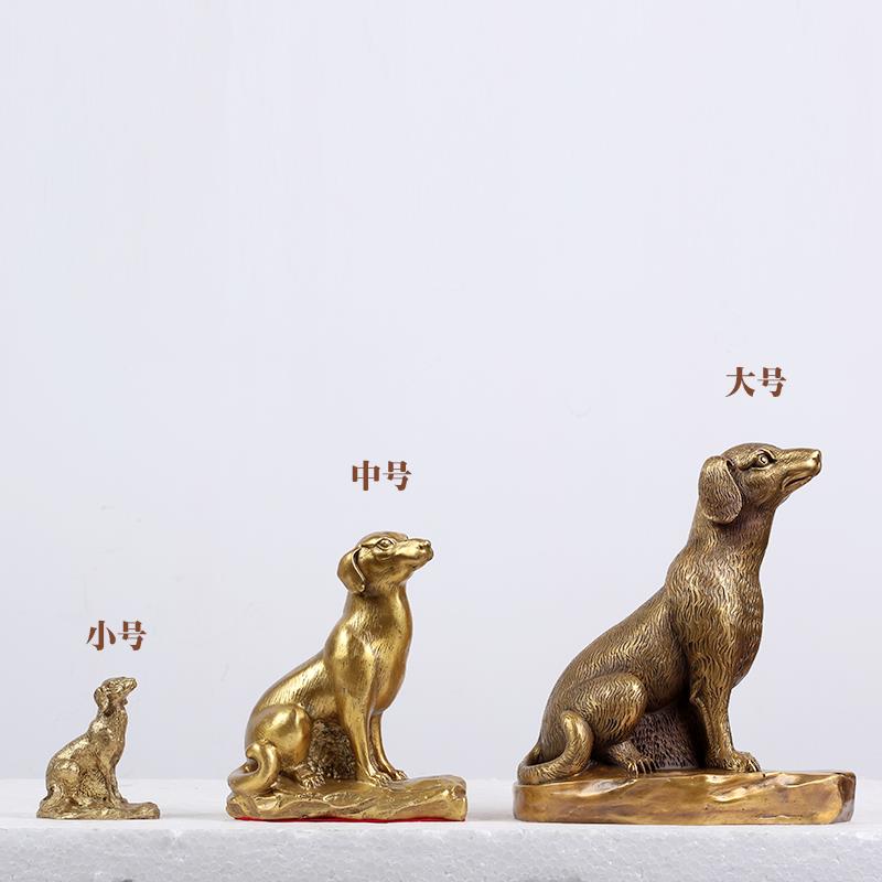 皇轩纯黄铜狗摆件生肖狗大号小风水中式铜工艺品金属家居客厅摆设