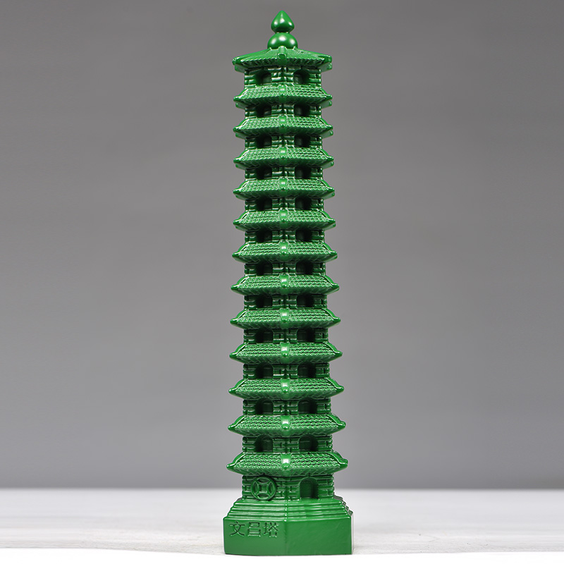绿色实木雕刻13层文昌塔摆件木头十三层文昌塔办公装饰送礼工艺品