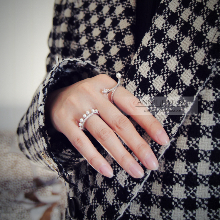 设计师品牌 925银 镶钻珍珠一字笑脸平衡项链戒指 皇冠裙摆戒指