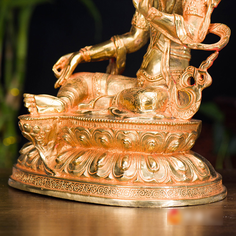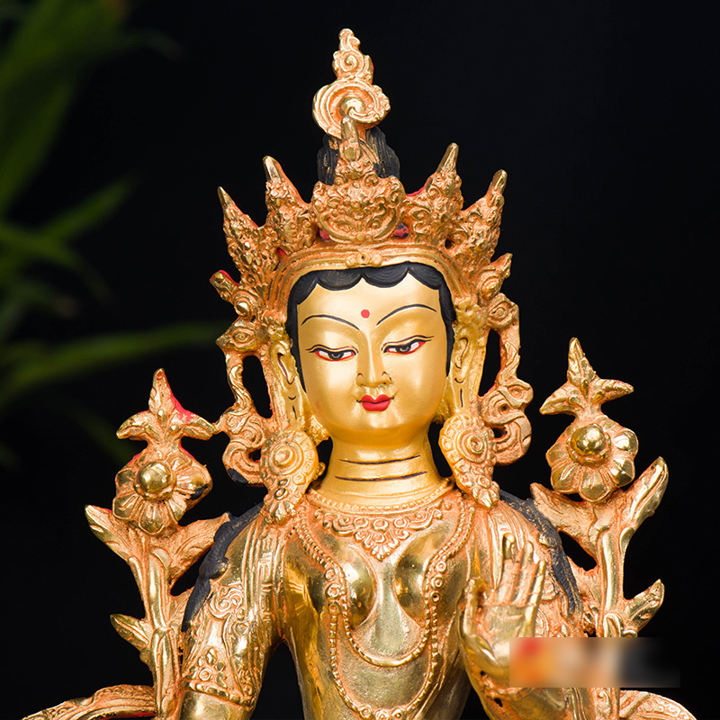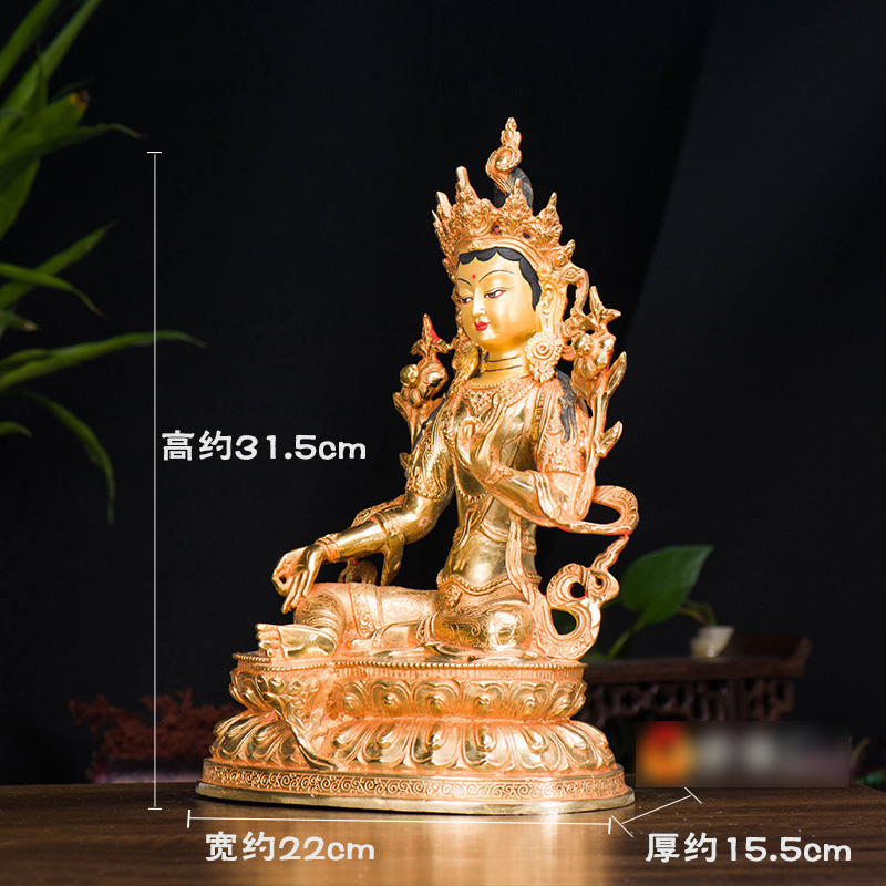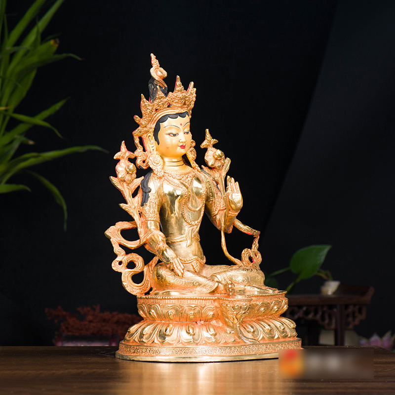 家用用品10寸用品国产家用铜全鎏金双层莲座绿度母铜像摆件