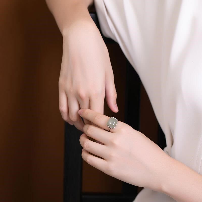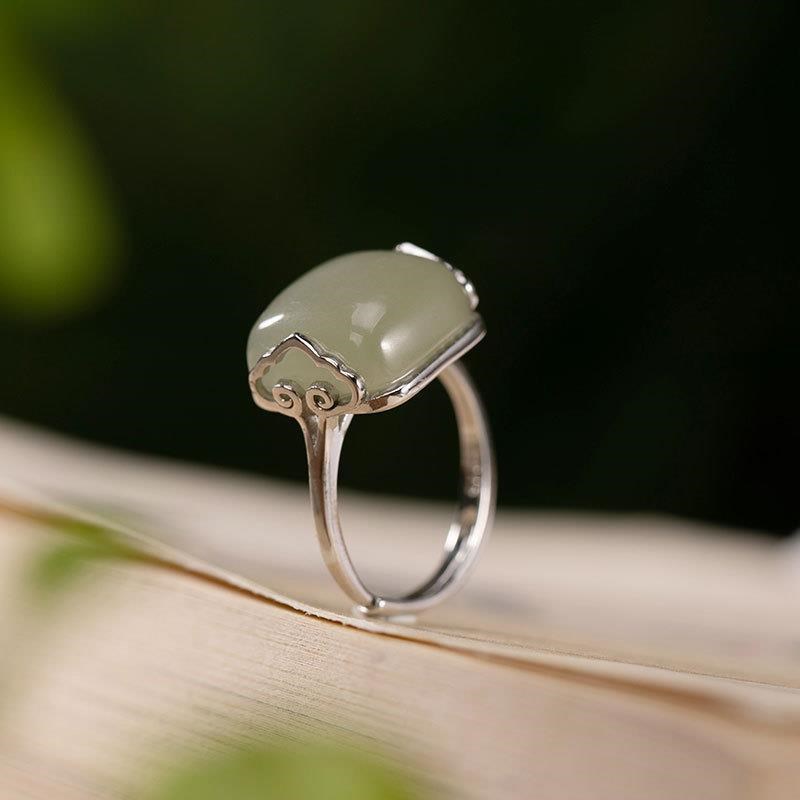 中国复古风Sf925银祥云精致戒指环大气质开口可调节和田玉百搭女