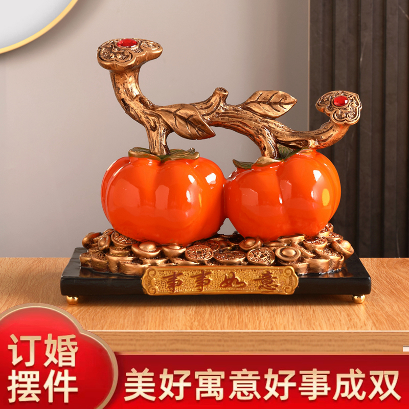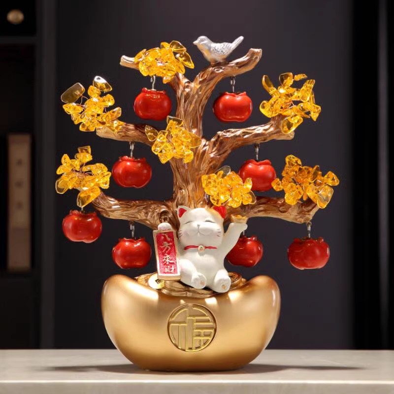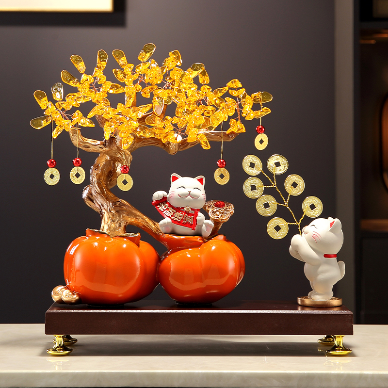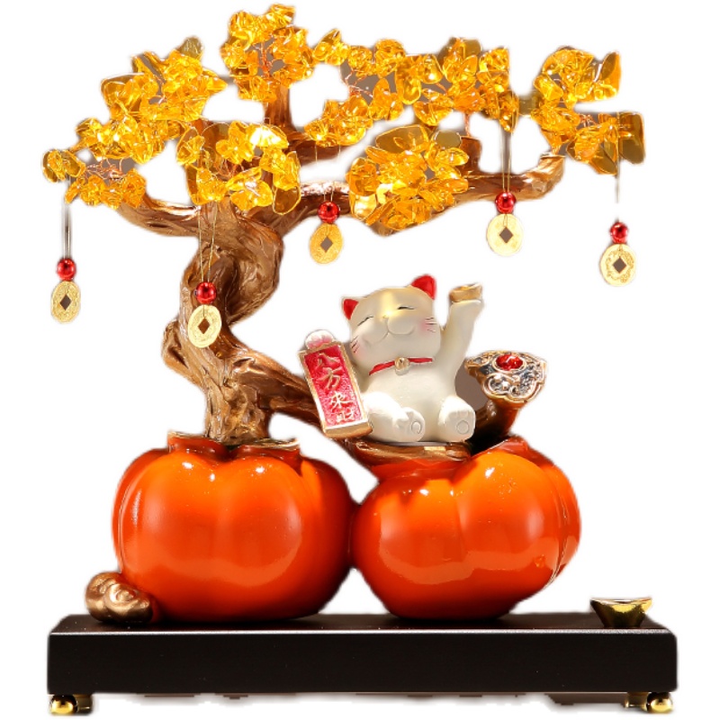 事事如意柿子发财树猫摆件客厅玄关前台装饰开业入宅乔迁之喜礼品
