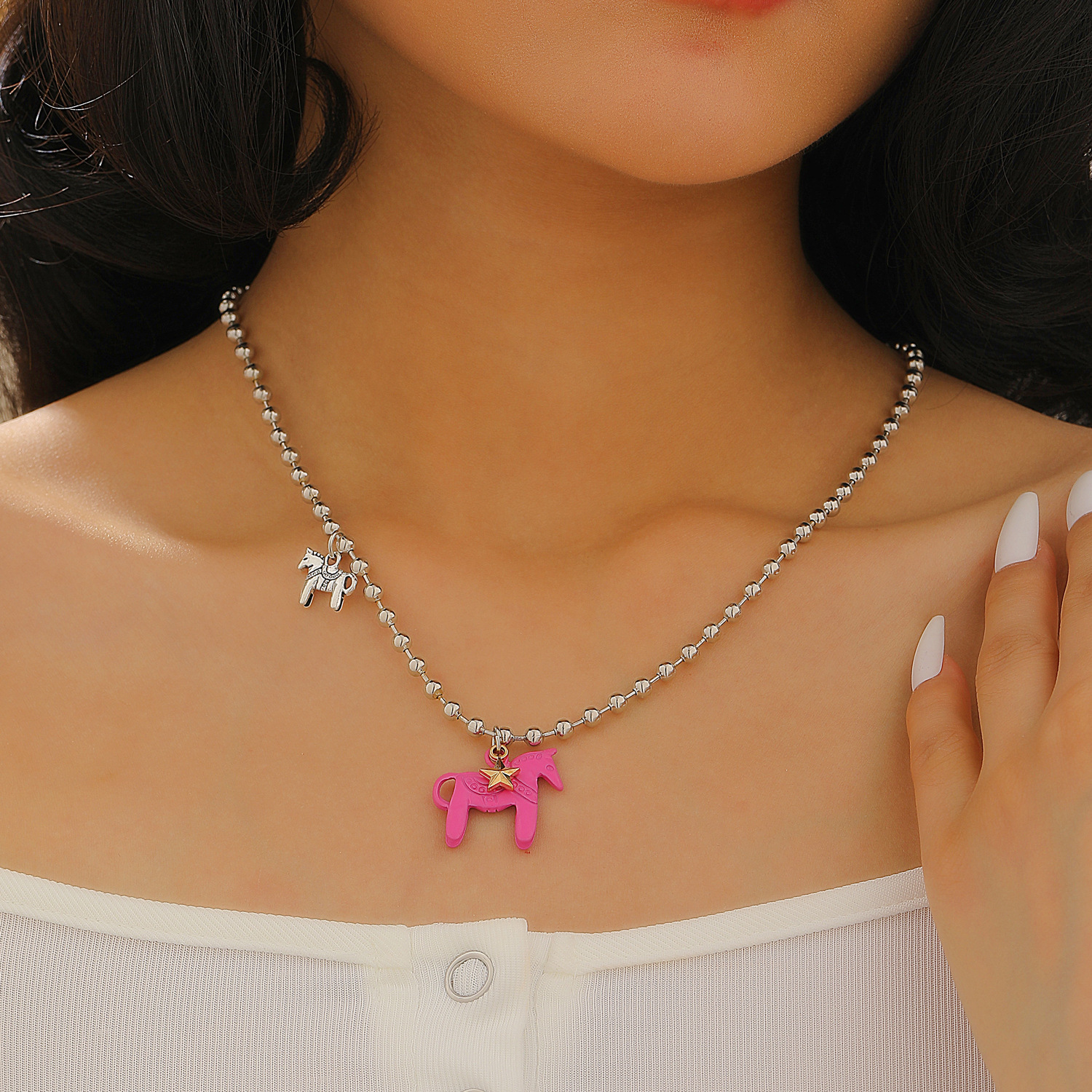 Cute Pony Pendant Necklace Chain Simple girl Clavicle Chain