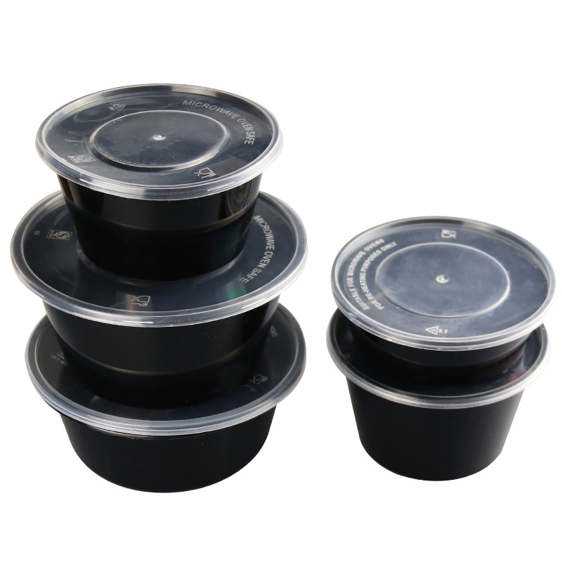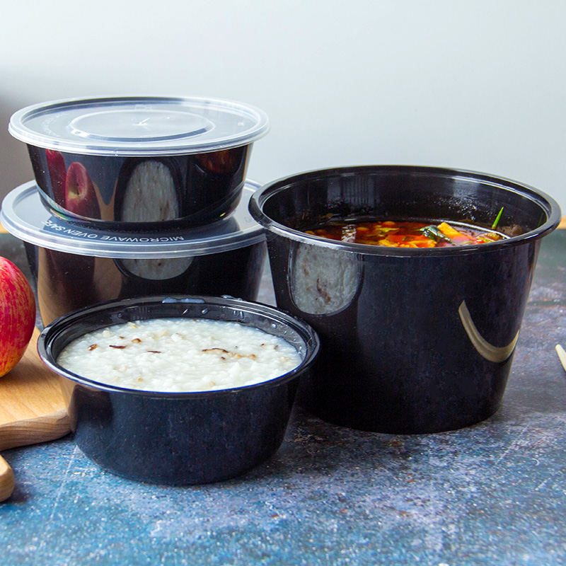 黑色一次性餐盒加厚圆形塑料打包盒带盖高档外卖盒子商用汤碗带盖