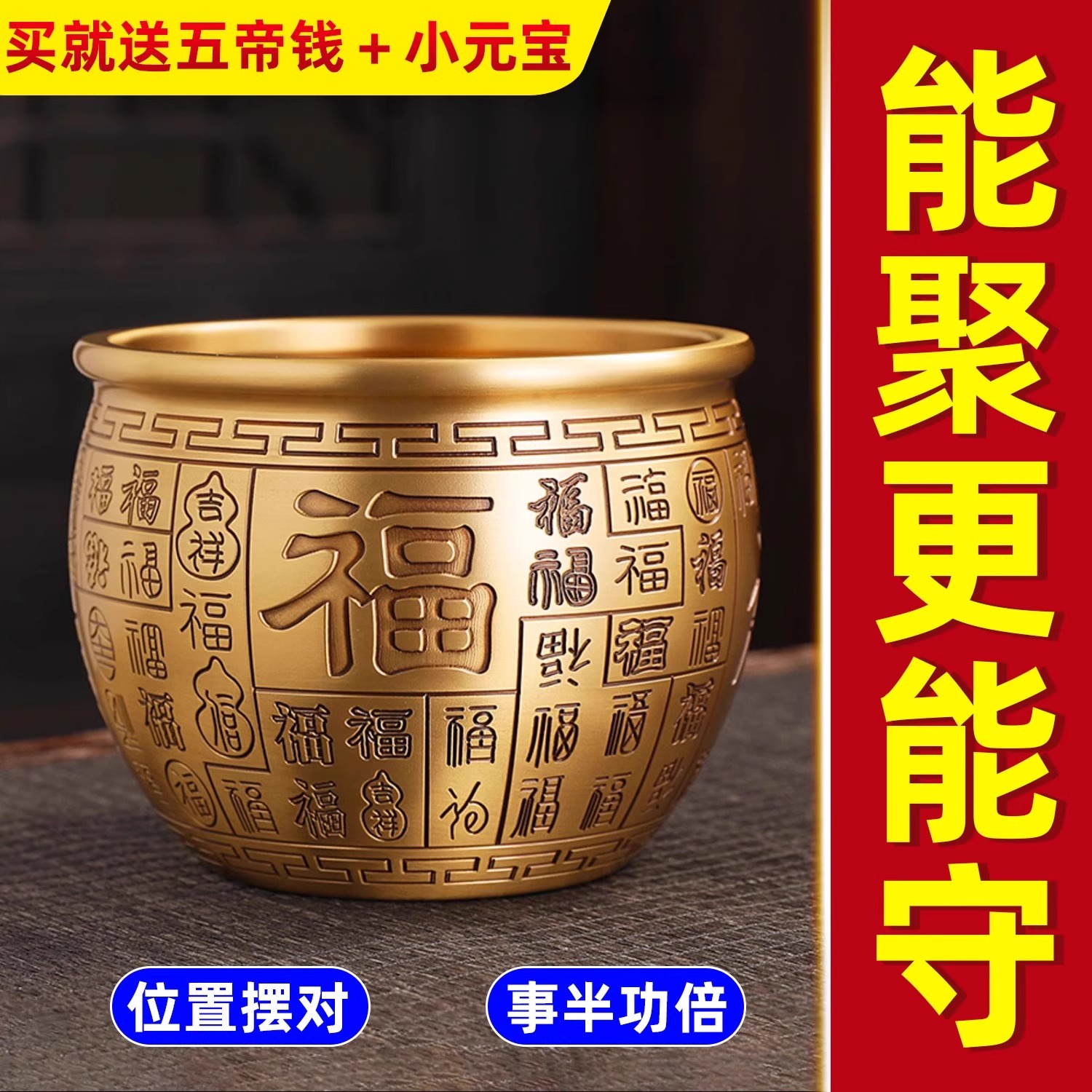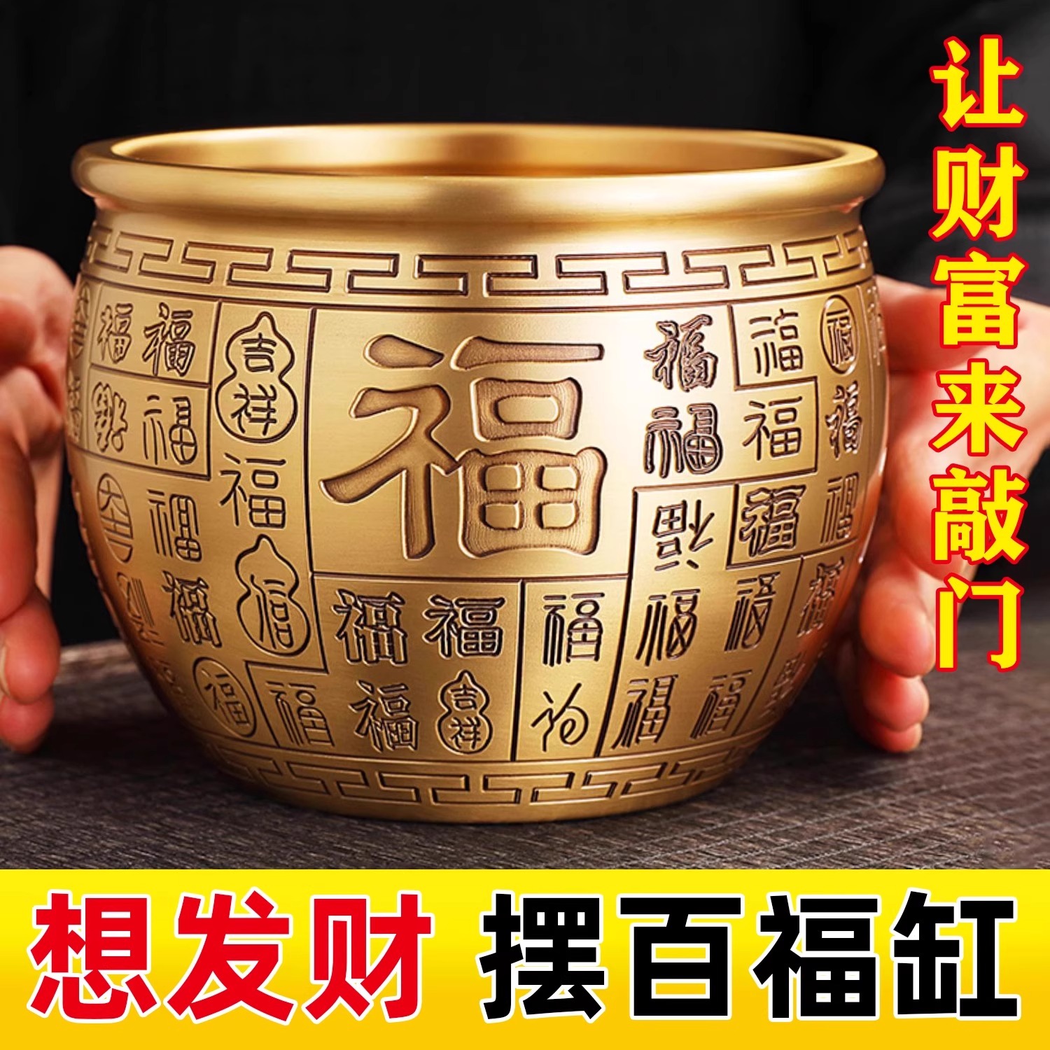 黄铜百福铜缸米缸冰箱客厅聚财缸铜缸存钱罐招财进宝聚宝盆摆件