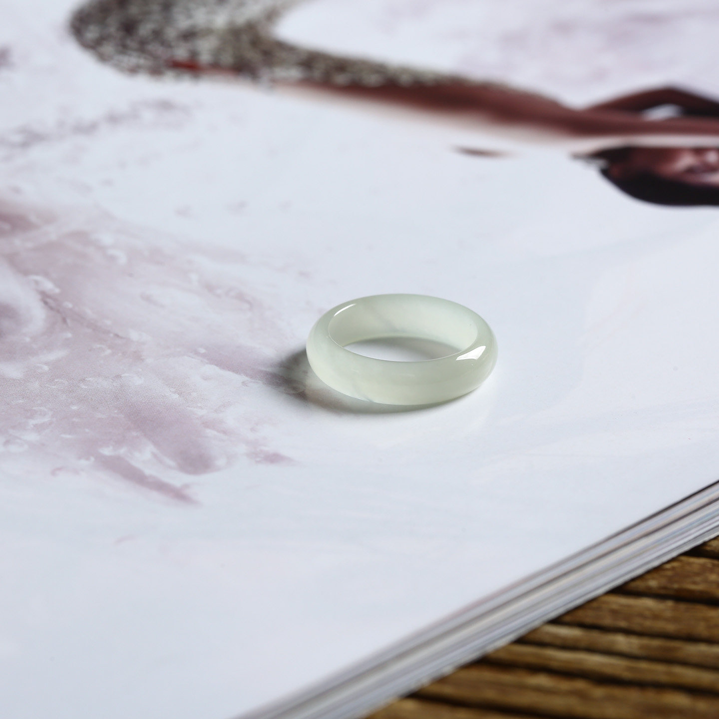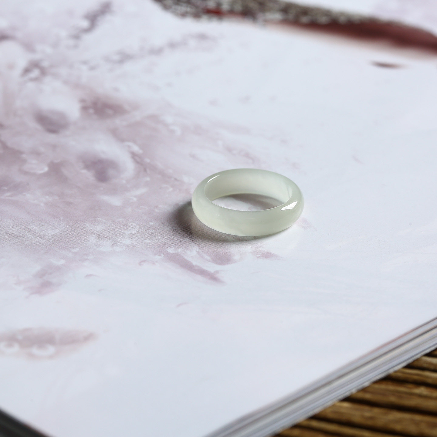 12号戒指 和田玉晴水青白泥鳅背圆弧素圈指环 9182