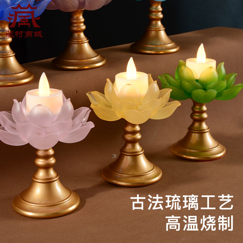 藏村琉璃莲花酥油灯灯盏灯座蜡烛烛台家用供佛灯架长明灯底座