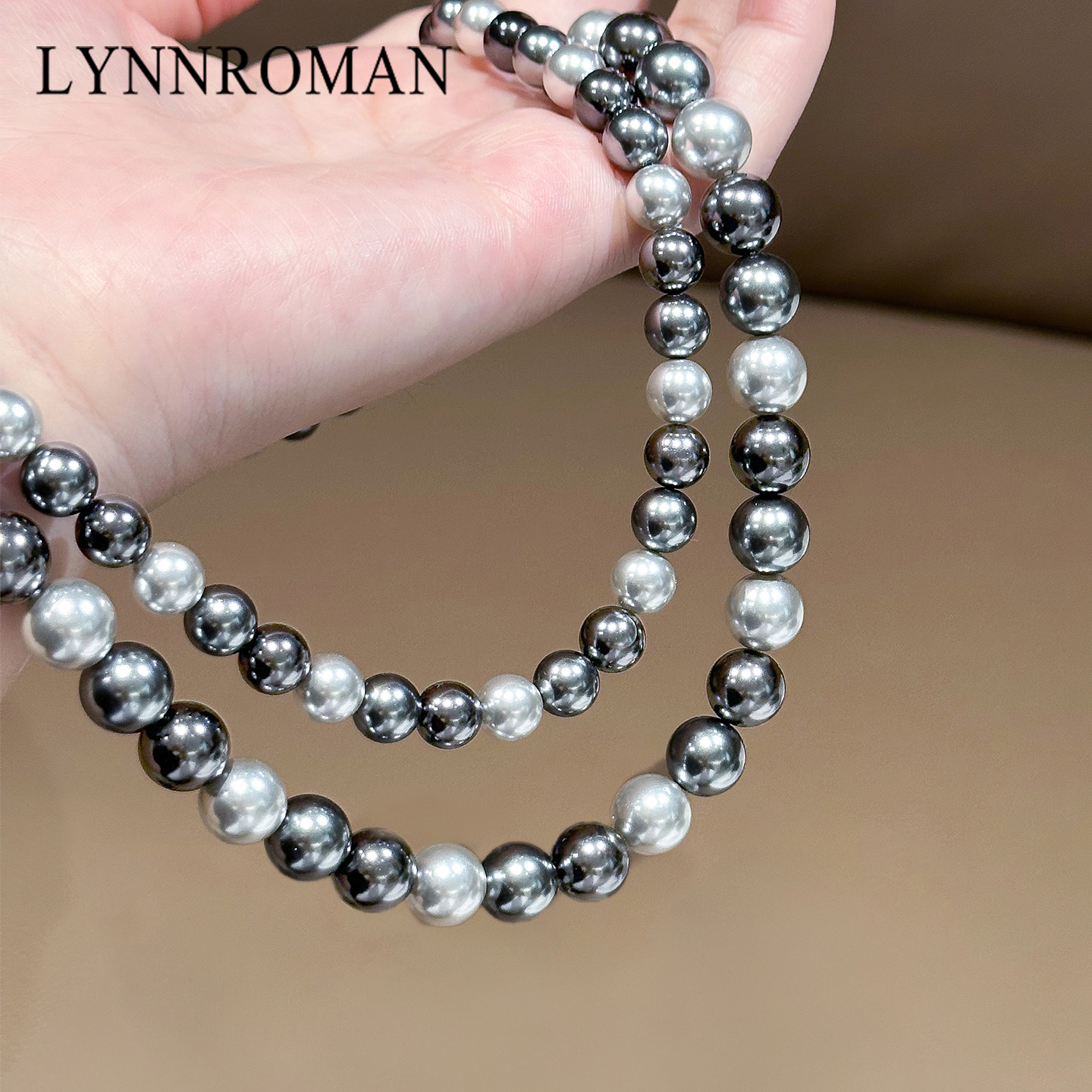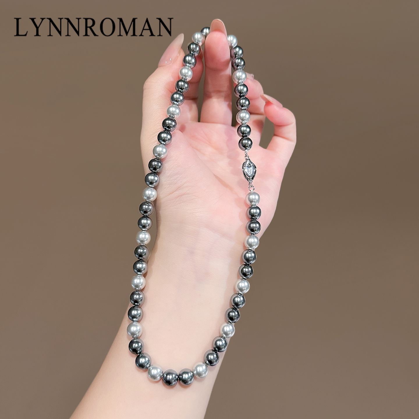 LYNNROMAN灰色珍珠项链女2025新款锁骨链优雅显气质设计感毛衣链