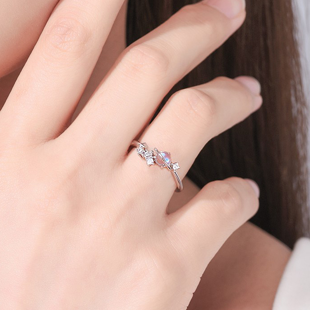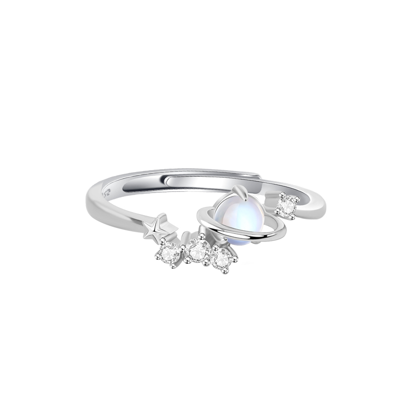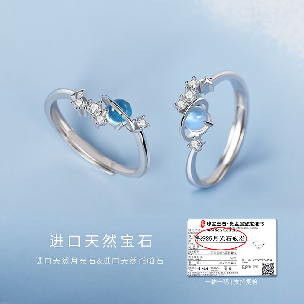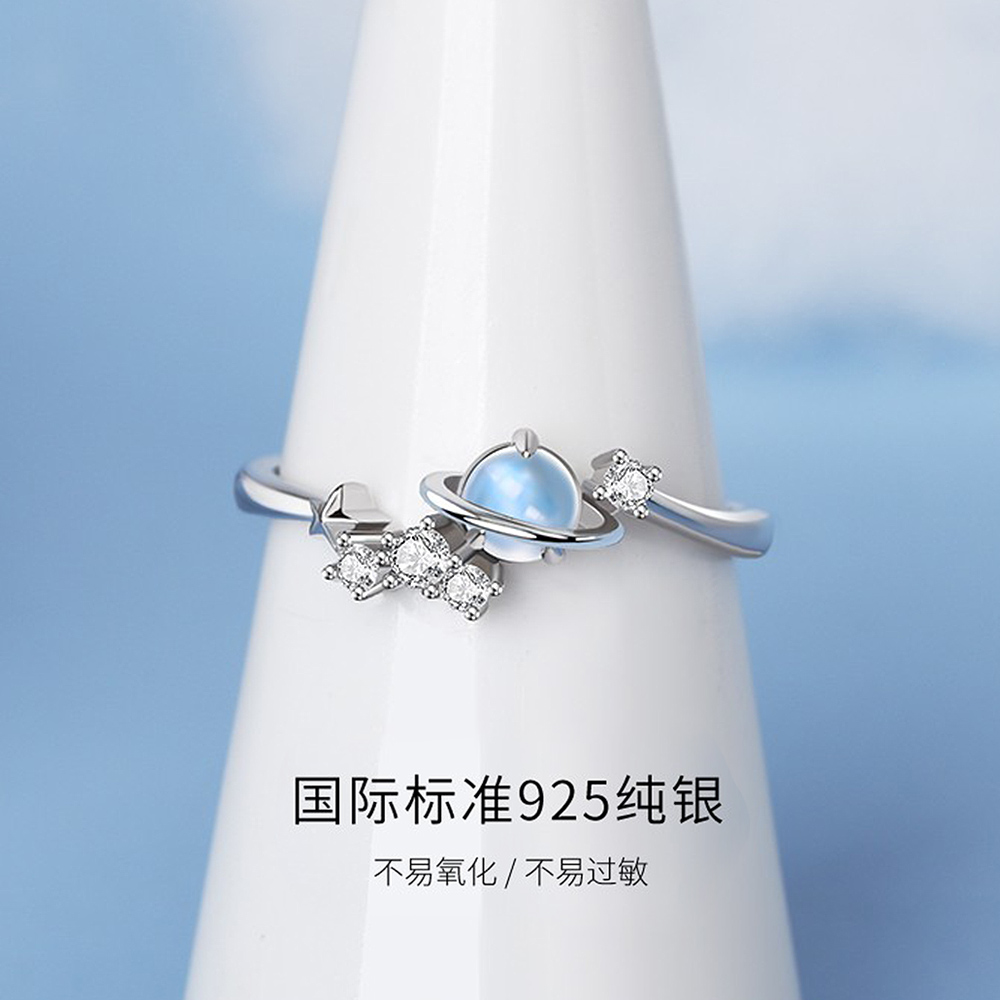 梦幻星球月光石戒指女生纯银轻奢小众设计感时尚闺蜜新款生日礼物