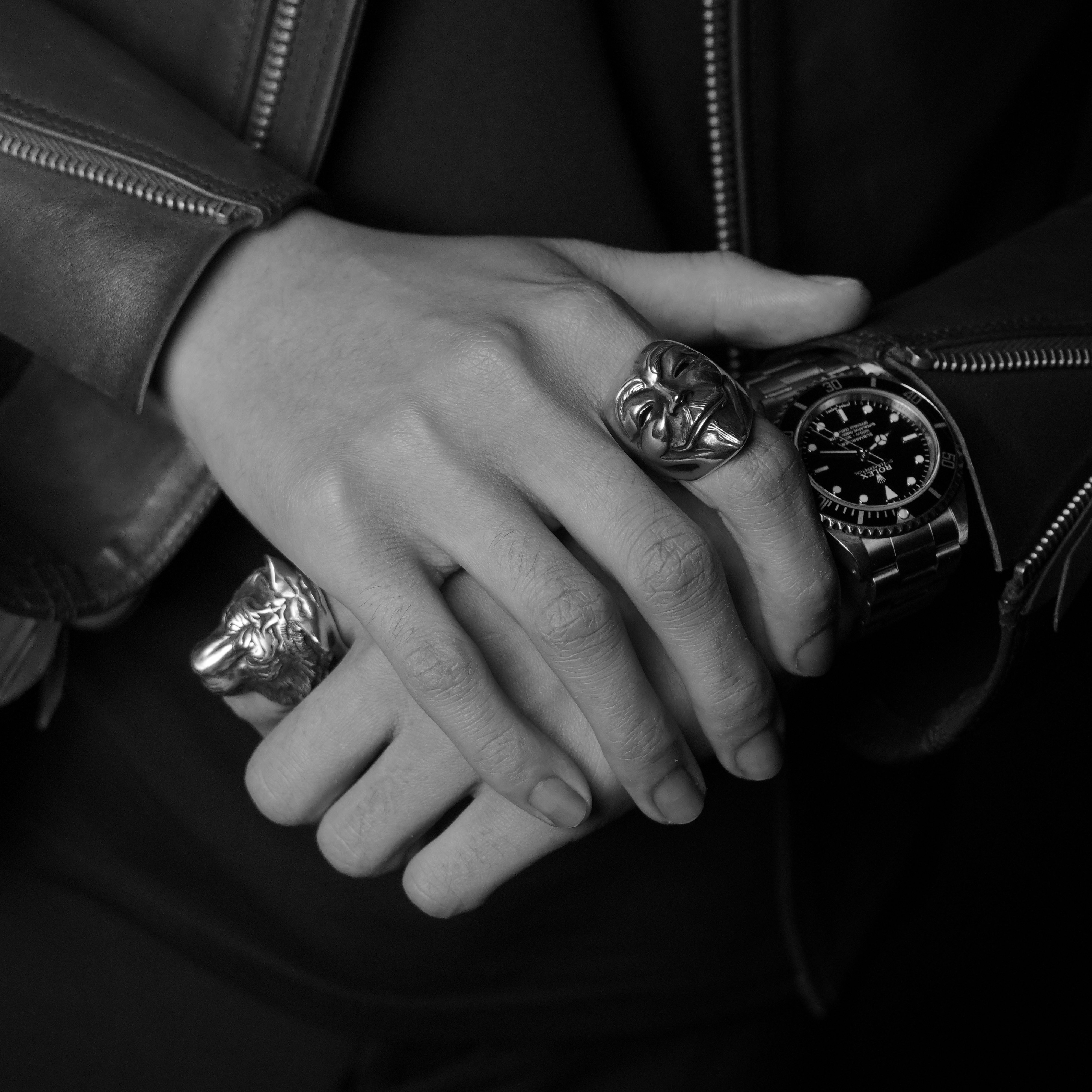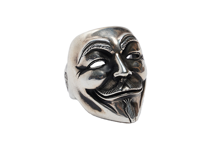 渡鸦工作室原创专属欧美V字仇杀队面具怪客戒指925银饰手工指环