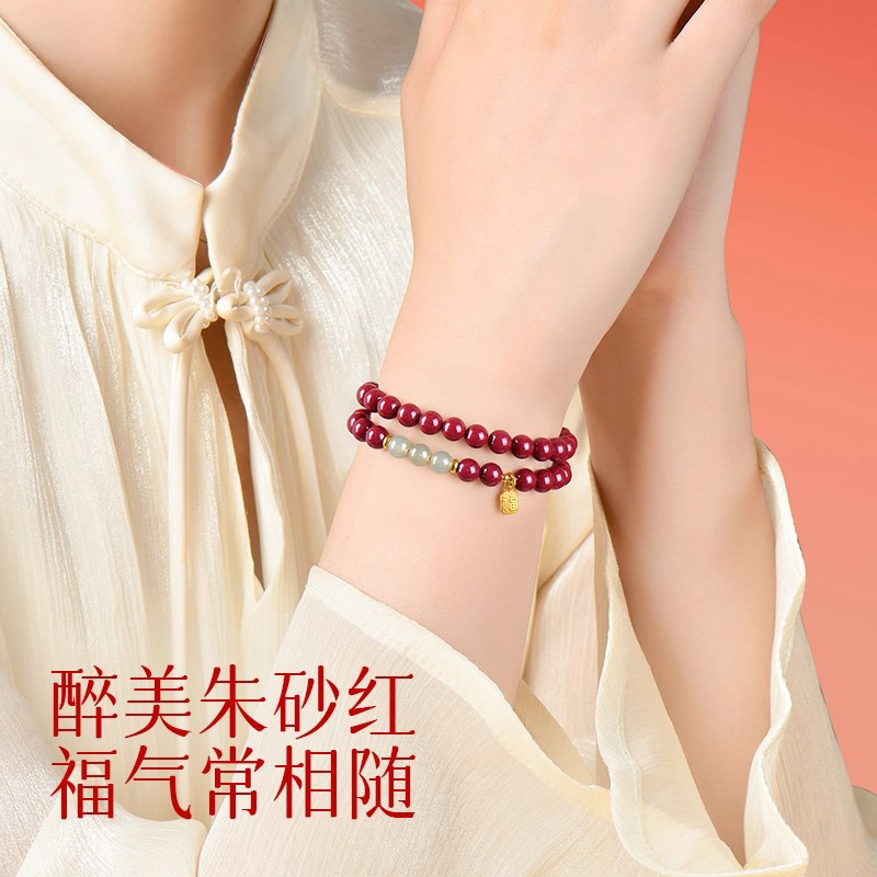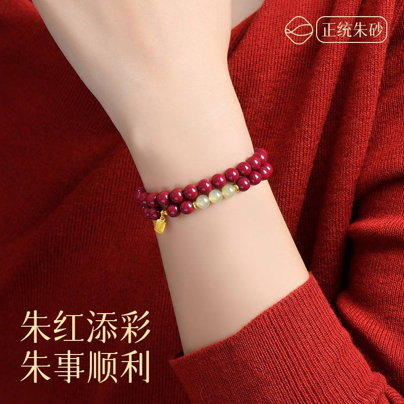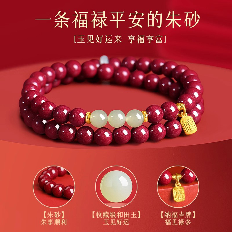 普陀山天然朱砂手链和田玉手串原矿高含量紫金砂转运女送闺蜜礼物