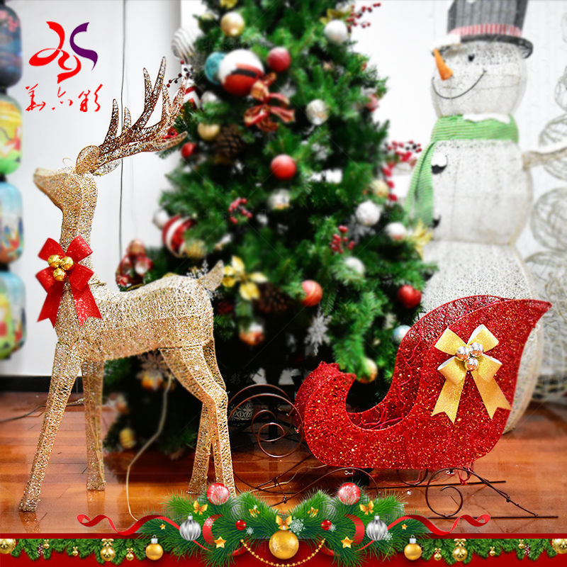 发光节日用品圣诞装饰品鹿拉车室外使用网红商场布置家用现货产品