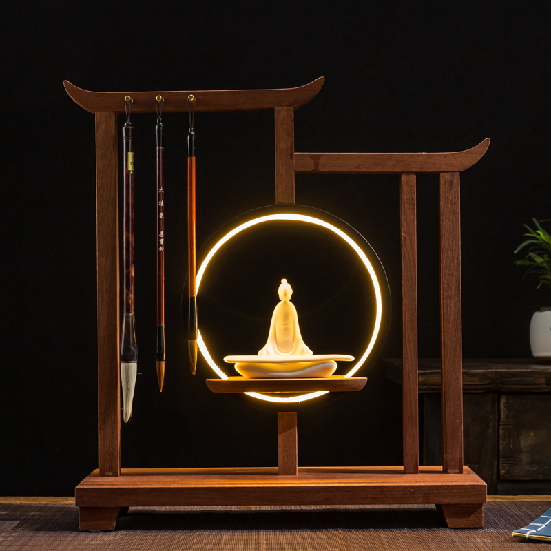 书房摆件禅意台灯中式红木笔架毛笔挂文房四宝创意实木挂毛笔架子