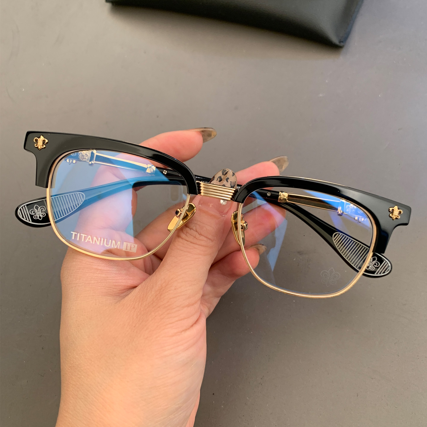 新品眉毛架眼镜框架关晓彤同款纯钛银饰超轻近视平光个性男女同款