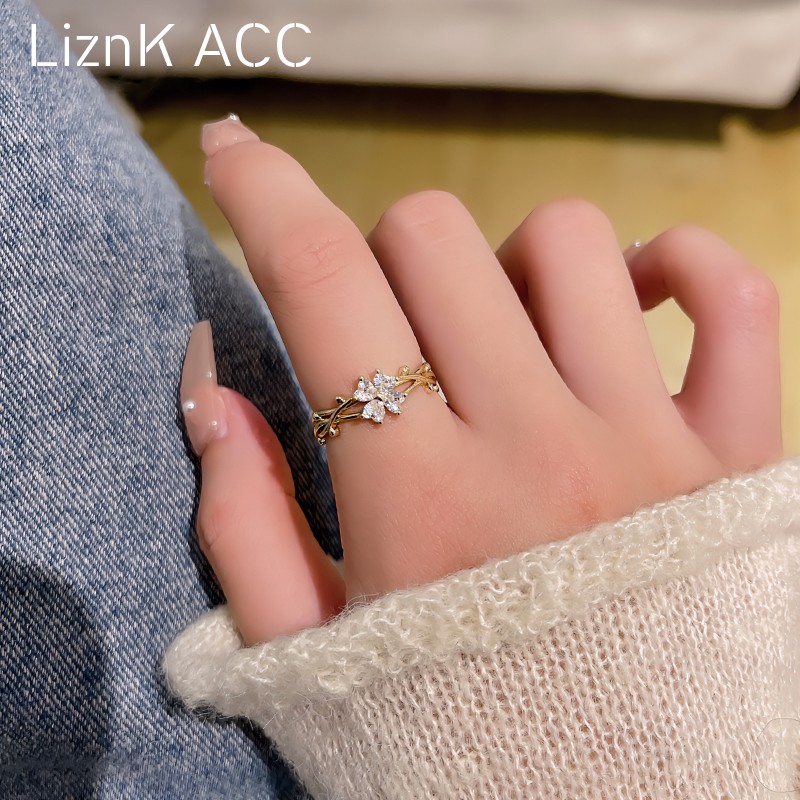 独特水晶四叶草戒指女小众设计感高级轻奢食指环时尚个性2023年新