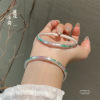 银卷风足银999.9复古沙旧珐琅莲花荷叶圆棍开口手镯民族风