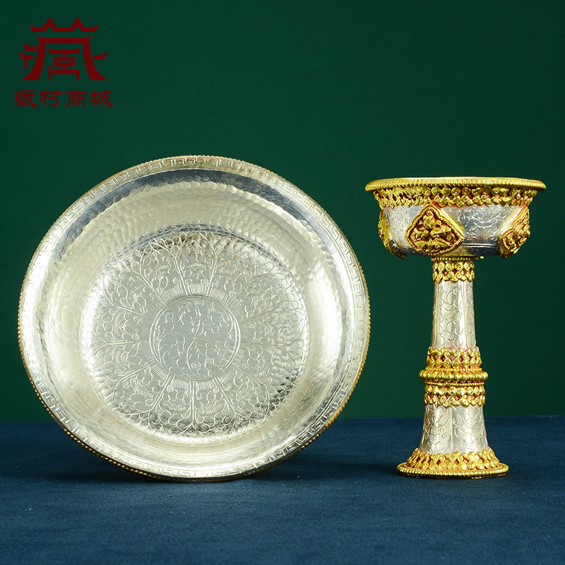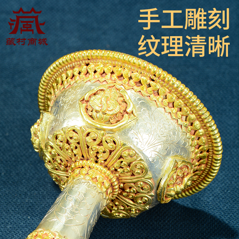尼泊尔手工护法杯八吉祥雕花供杯家用圣水杯高脚鎏金鎏银供水杯