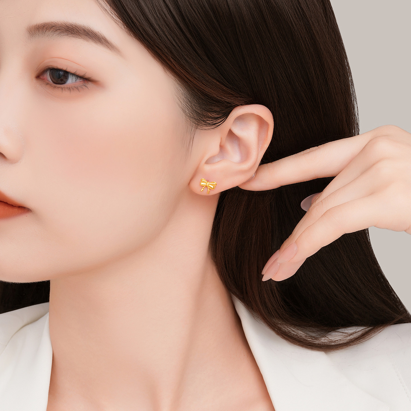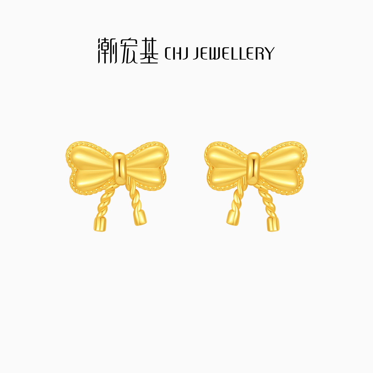 潮宏基至简蝴蝶结足金耳钉黄金耳饰轻奢时尚送女友生日礼物 计价