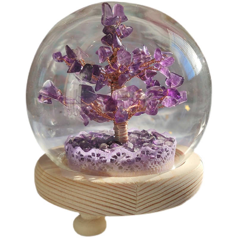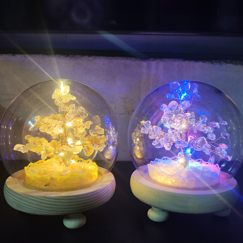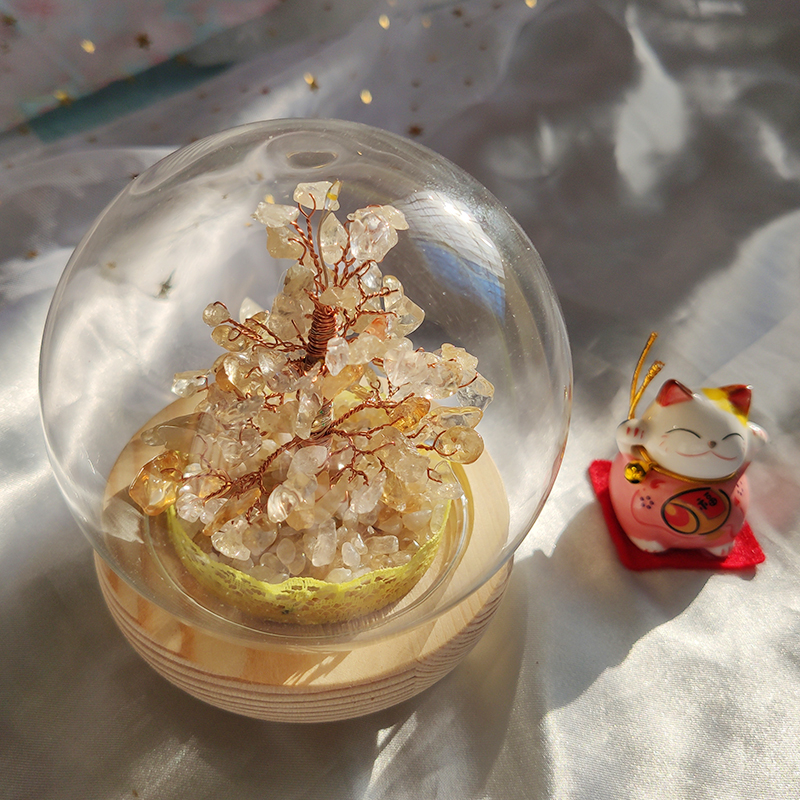 日式植物黄水晶圆球带暖彩灯树手工客厅桌面摆件送礼圣诞节日礼物