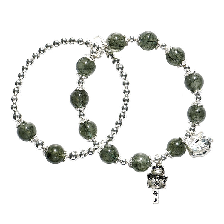 绿发晶 纯银转运珠正品天然绿水晶手串绿幽灵品牌古风复古手链女