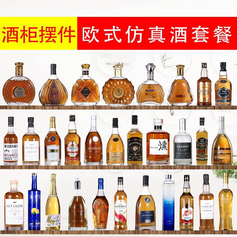 酒柜摆件展示欧式创意家居装饰酒道具样板间客厅桌面仿真洋酒瓶子