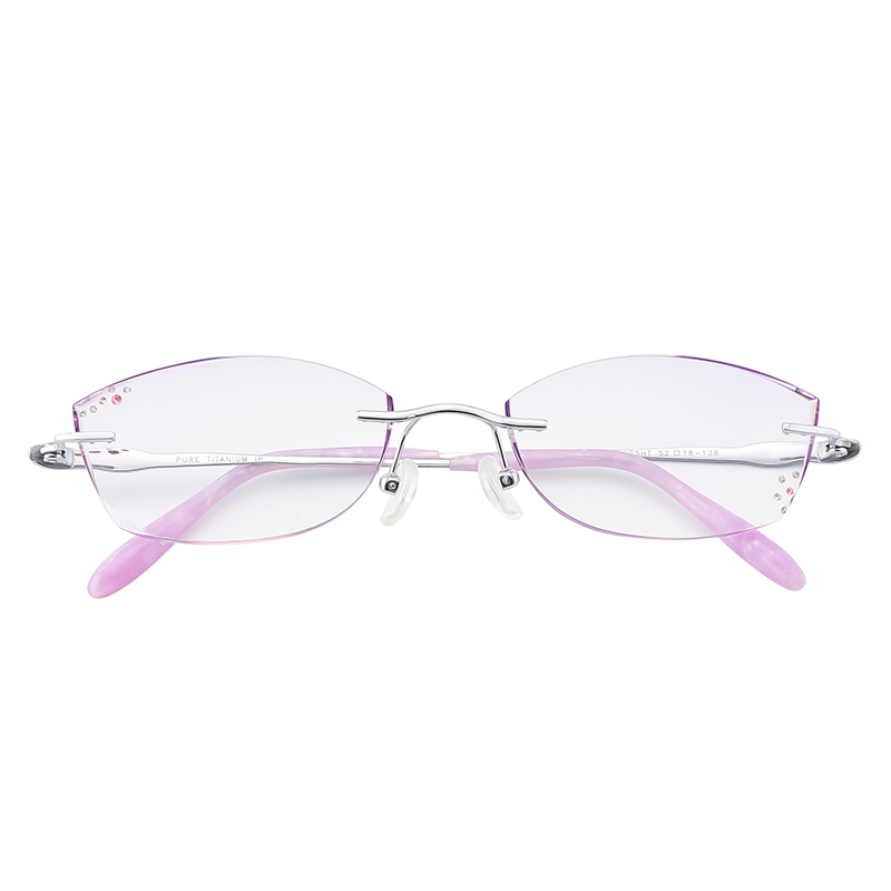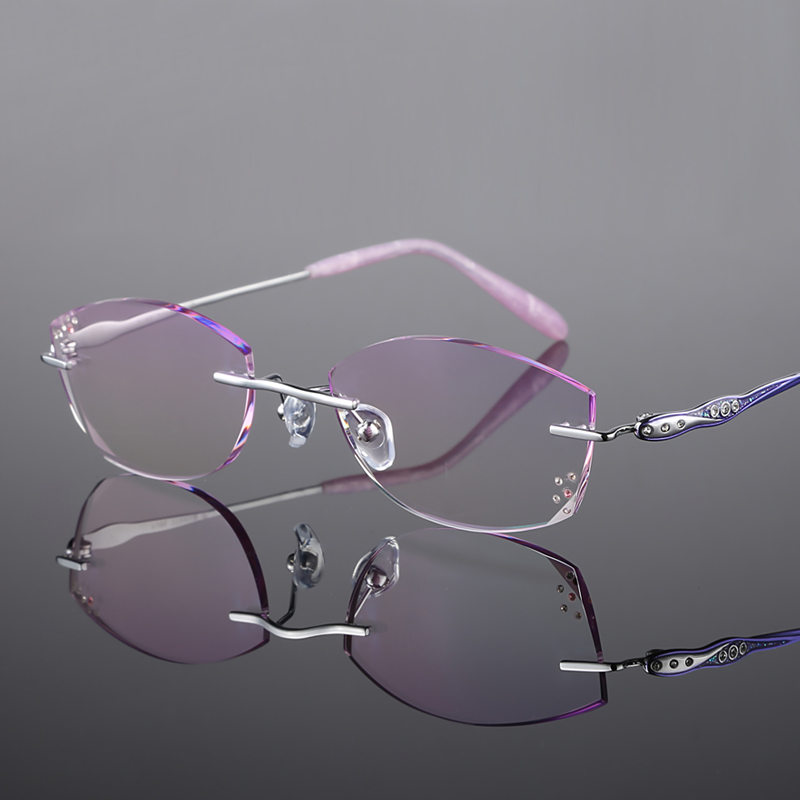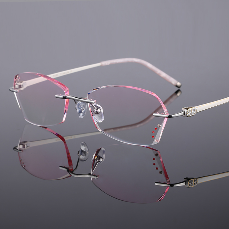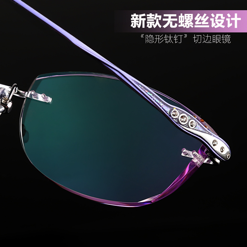女款切边 无框 纯钛切边眼镜 超轻 无螺丝 八8孔设计 成品眼镜