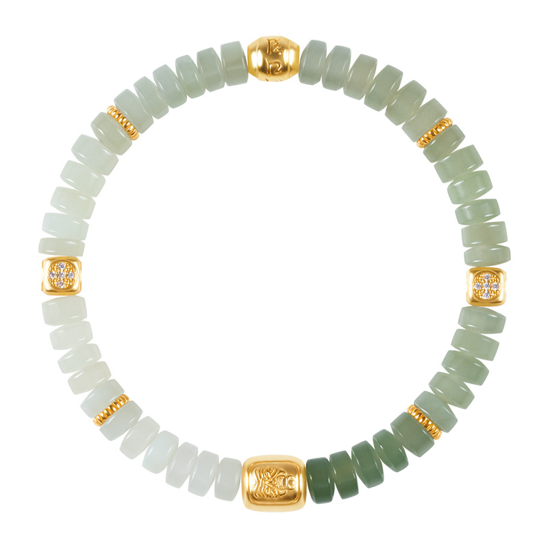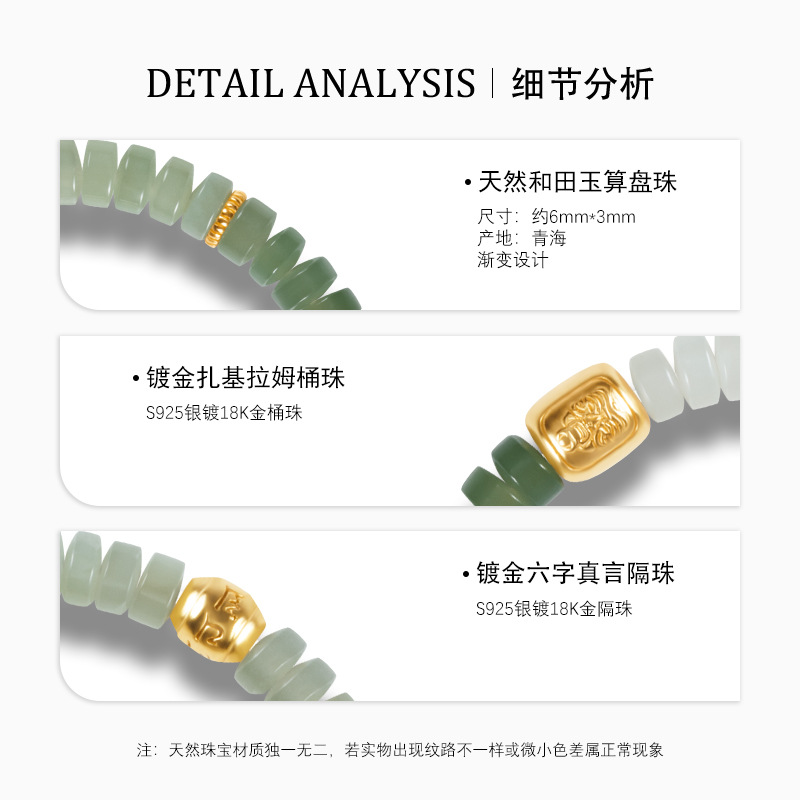 现货天然和田玉手串女款S925银镀18K金直切珠6mm渐变手链源头