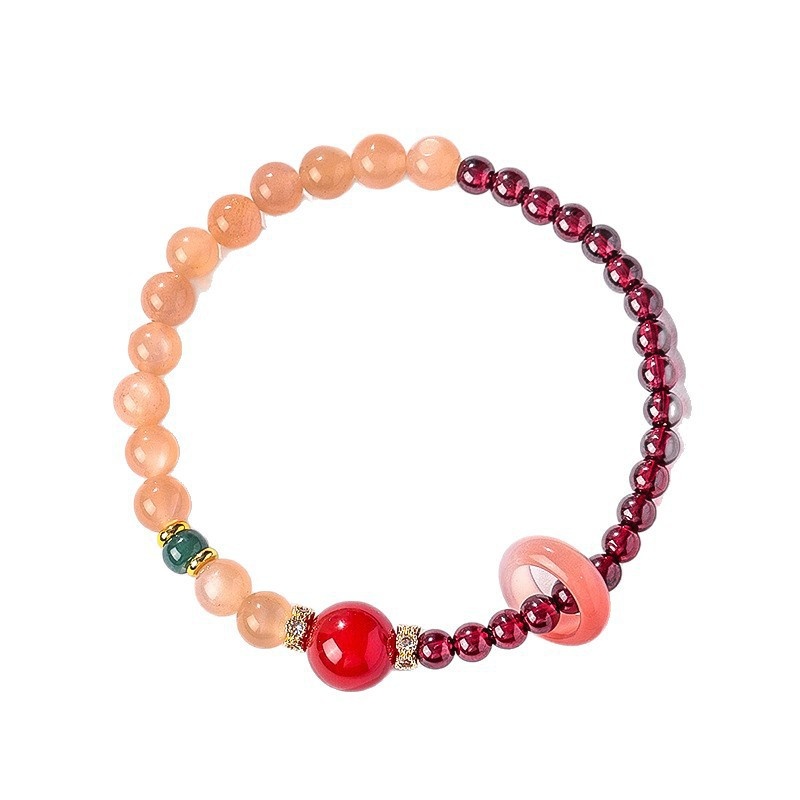 新中式天然石榴石粉水晶串珠手链女文艺复古盐源玛瑙蓝色翡翠手串