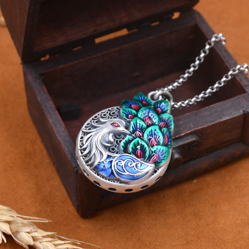 彩色凤凰S999足银复古女纯银吊坠毛衣链挂件长款文艺项链银饰正品
