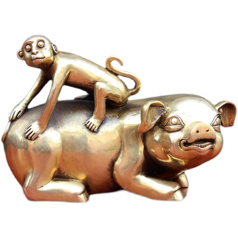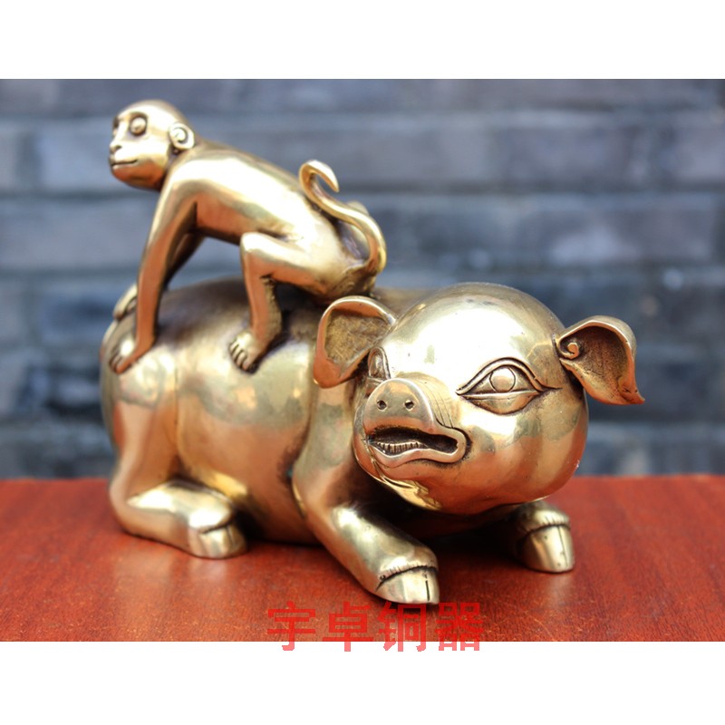 宇卓铜器 纯铜猴 铜猪 黄铜猪上封侯 注定封侯 工艺品摆件