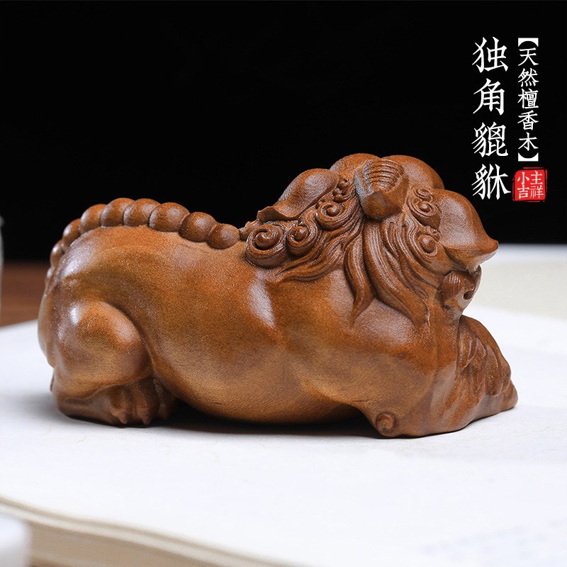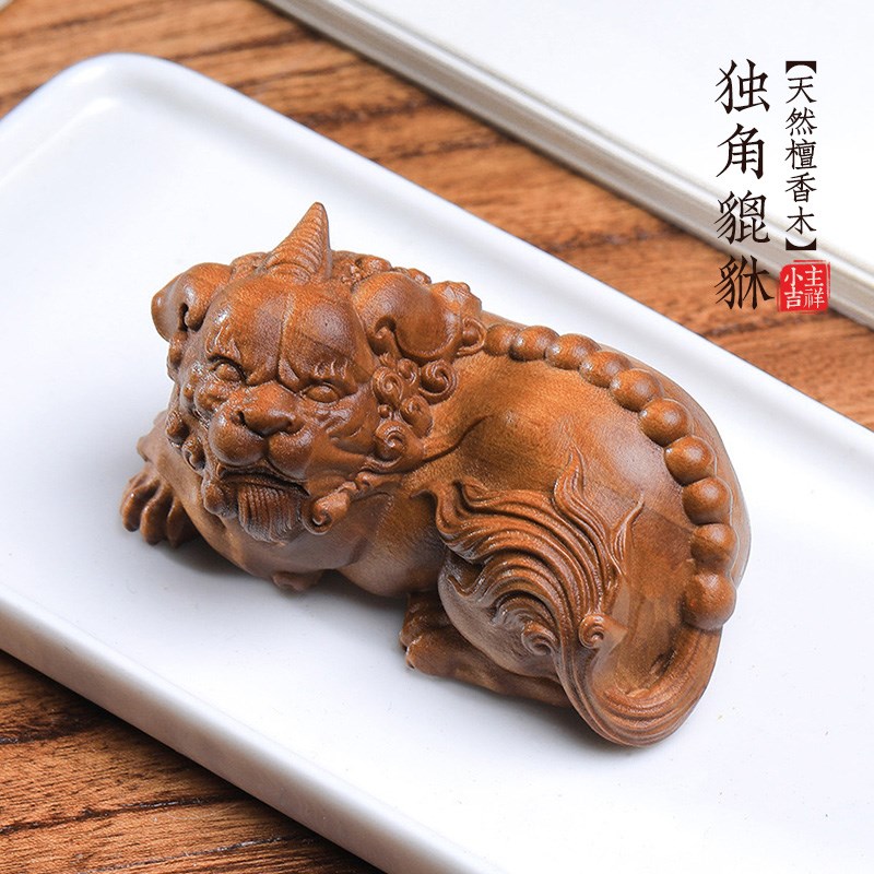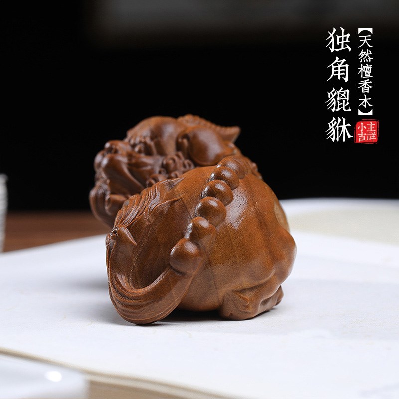 天然檀香木独角貔貅摆件招财转运手把件创意文玩桌面装饰品木雕刻