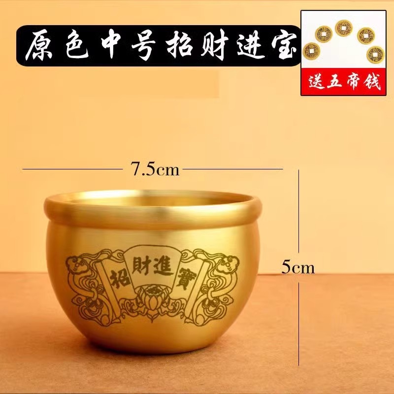 创意黄铜米缸招财百福缸聚宝盆卧室客厅冰箱桌面摆件纯铜百福水缸