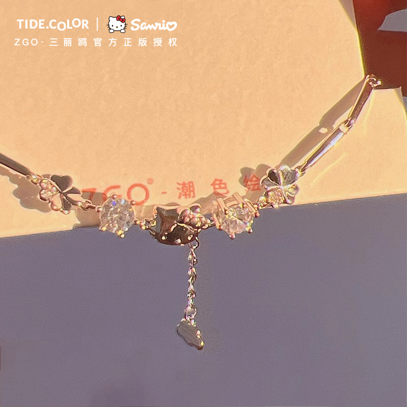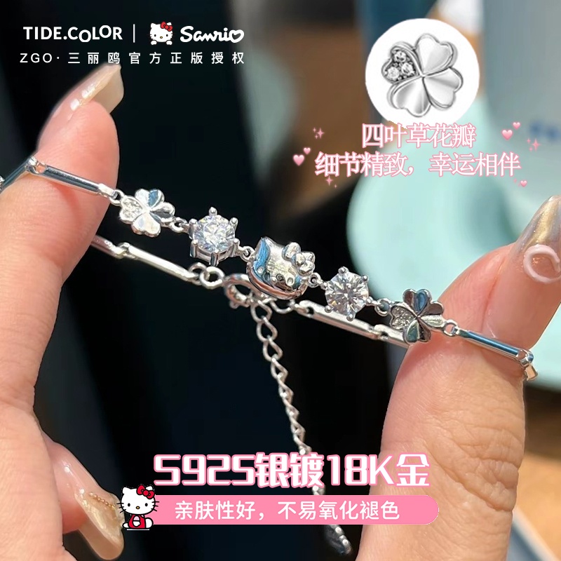 三丽鸥联名hellokitty四叶草纯银手链kt女童手镯女生儿童生日礼物