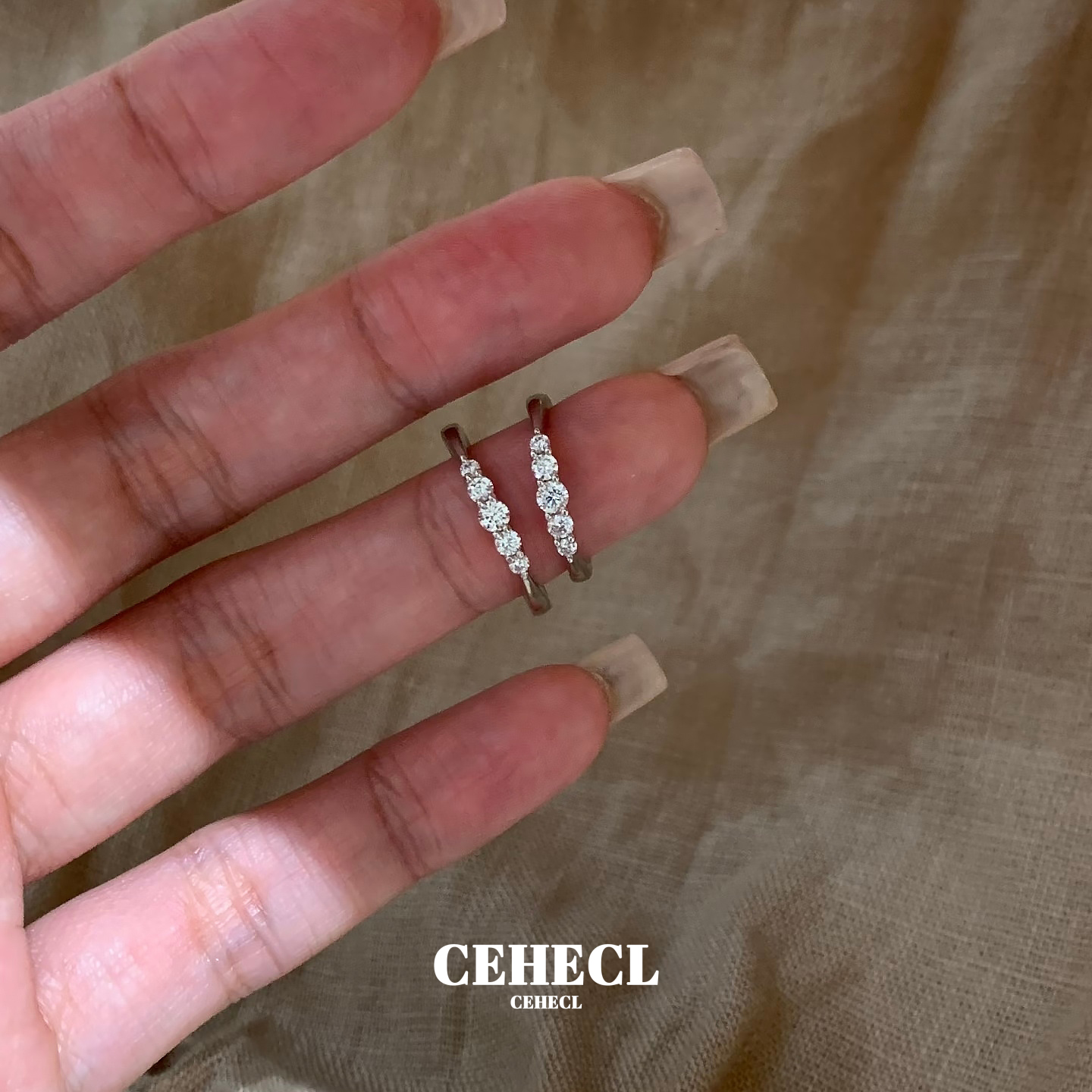 赛赫琳s925纯银素圈戒指女简约高级感超闪排钻锆石食指戒对戒指环