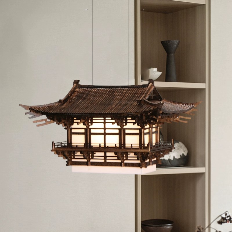 中式古建筑木雕亭子手工灯具品酒店大厅高级饭厅民宿成品吊饰摆件