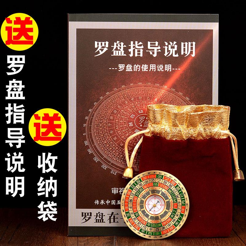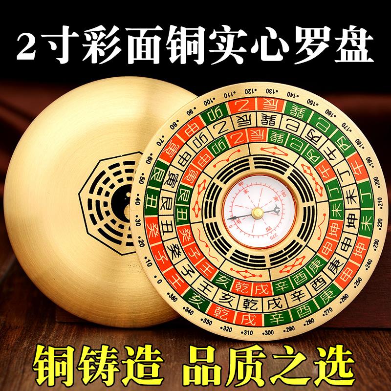 2寸罗盘专业高精度全铜实心罗经三元三合综合黄铜罗盘袖珍小随身