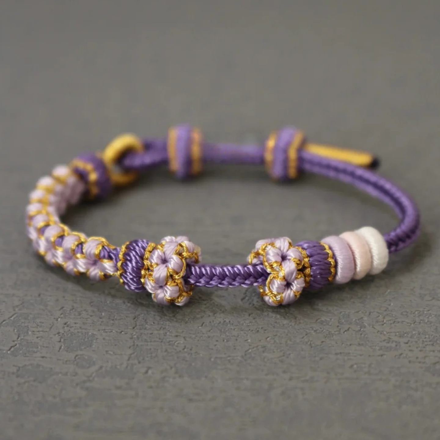 紫色桃花结DIY手绳手工编织绳可穿珠串黄金转运珠可调节编绳手链