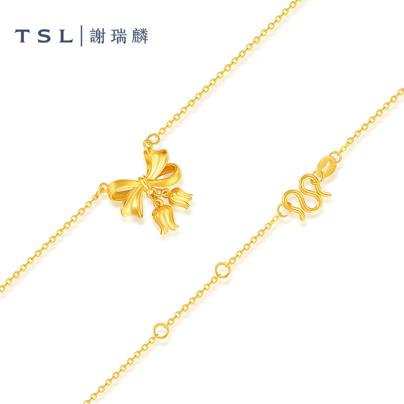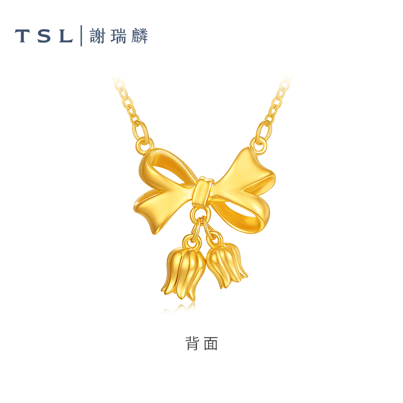 TSL谢瑞麟黄金蝴蝶结项链5G足金工艺风铃花足金金链新品计价YX723