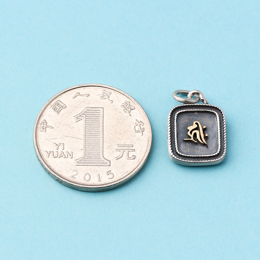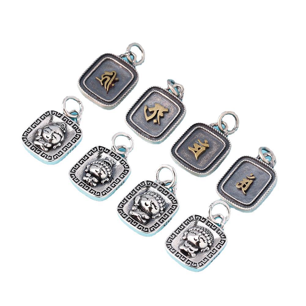 s925纯银复古生肖八大守护神方牌吊坠嘎乌盒菩萨本命佛挂件