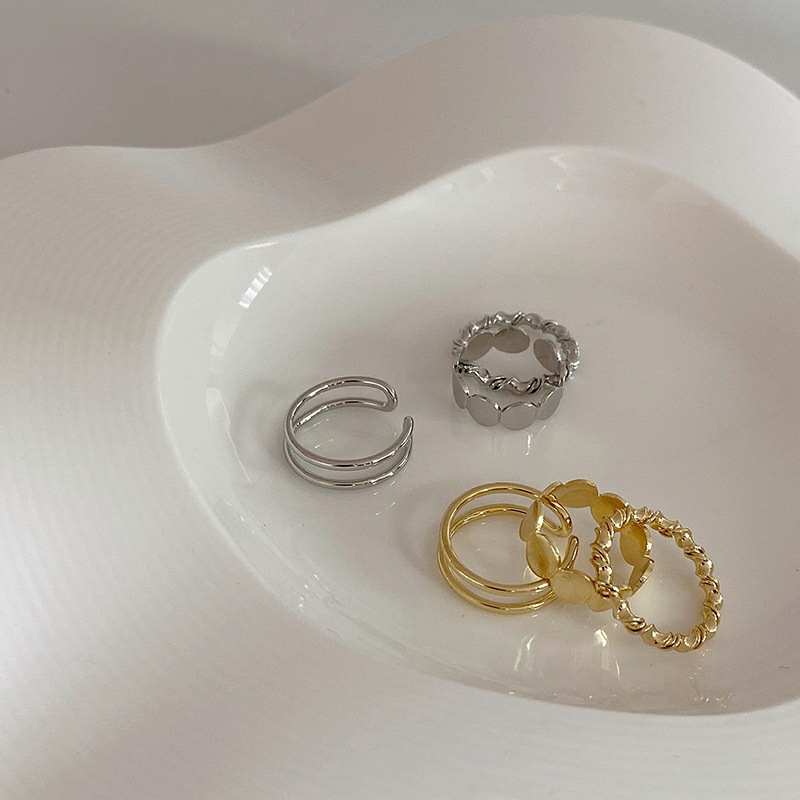 时尚个性三件套戒指女小众设计开口可调节指环2025年新款潮食指戒
