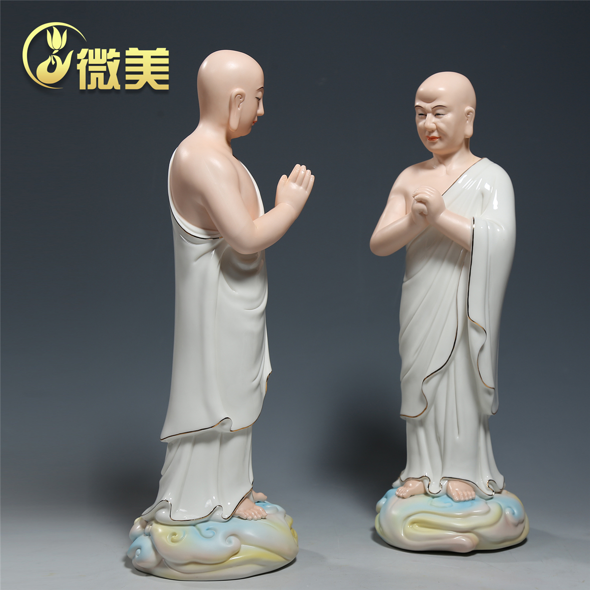 微美陶瓷阿难尊者迦叶尊者站像释迦牟尼佛协侍神像居家供奉摆件