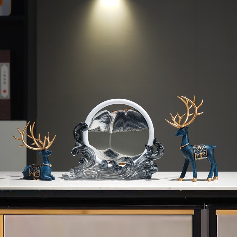 新中式2024龙年流沙画t摆件桌面电视柜酒柜家居办公室装饰品礼品
